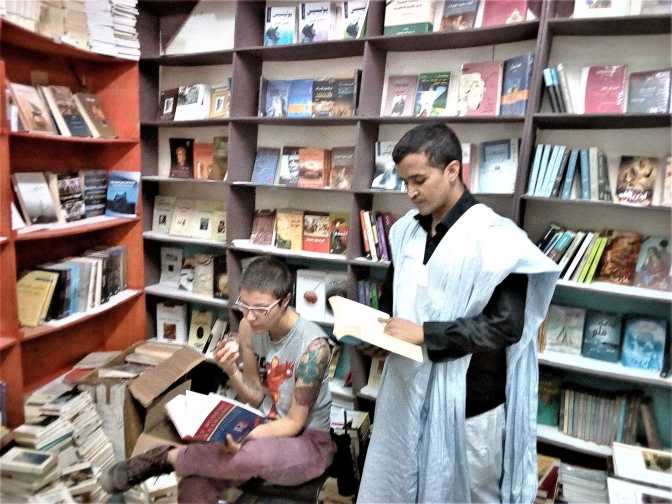 Basically the first days I walk around, going to Moulay’s Book Shop, which is really near the house, so different of what I imagined and also so different of what was a few years ago when he opened (I saw a interview he made to a local channel), when it was not dominated by the sand and disorganization. But maybe is not his fault or no Mauritanian fault. It is the sand. Everything, day by day, ends up eaten by the sand. Lost their life to the sand. The shine is gone. All that remains is the sand.