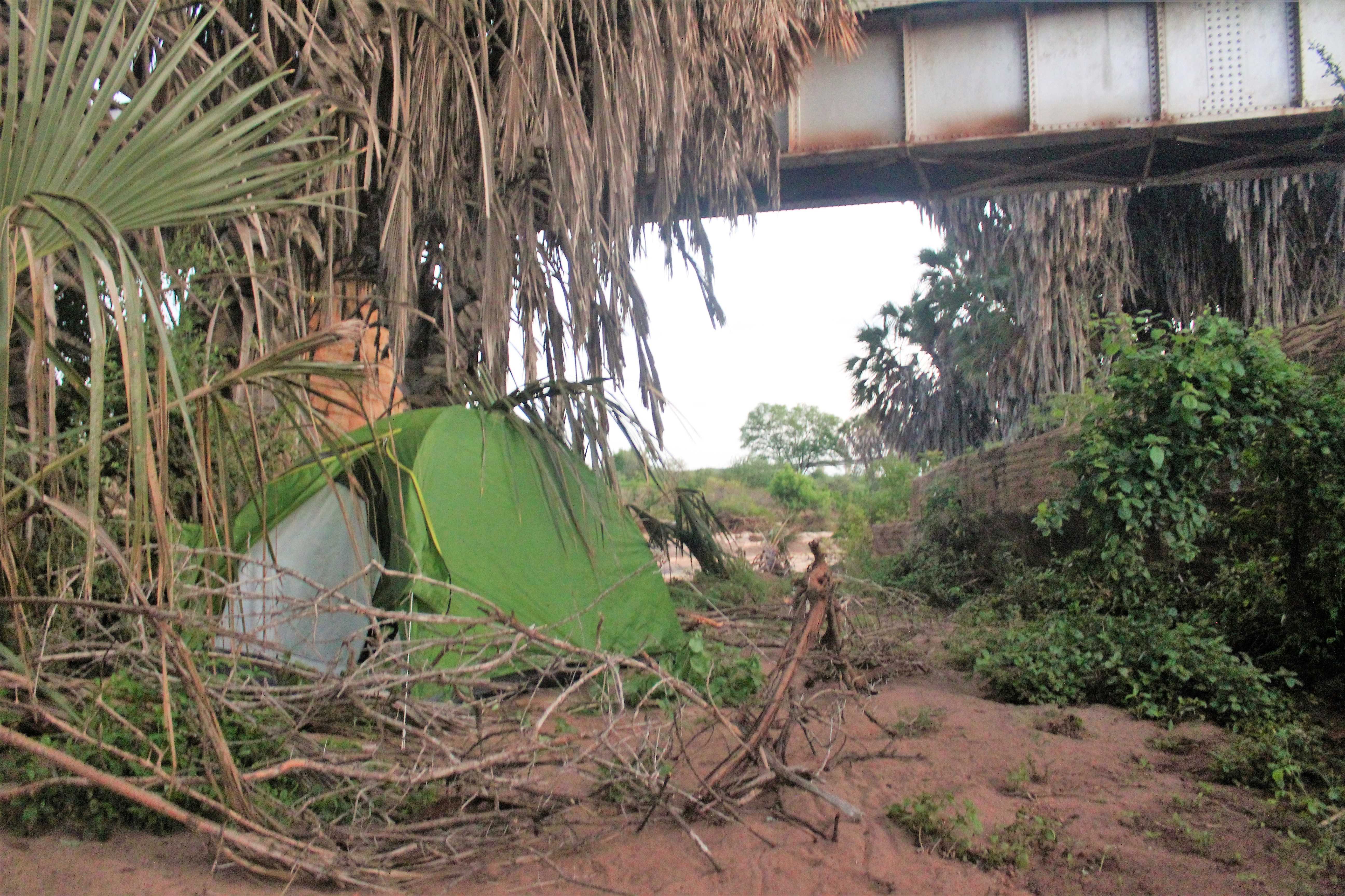 But if I was so terrified, why had I chosen a water source to make my camping? Even after have seen some fresh hippos’ paw prints earlier in the other side of the river? Because even being a water source, it is too close to the road and the noisy railway. And because I wanted to be near to the original bridge as I already told you.