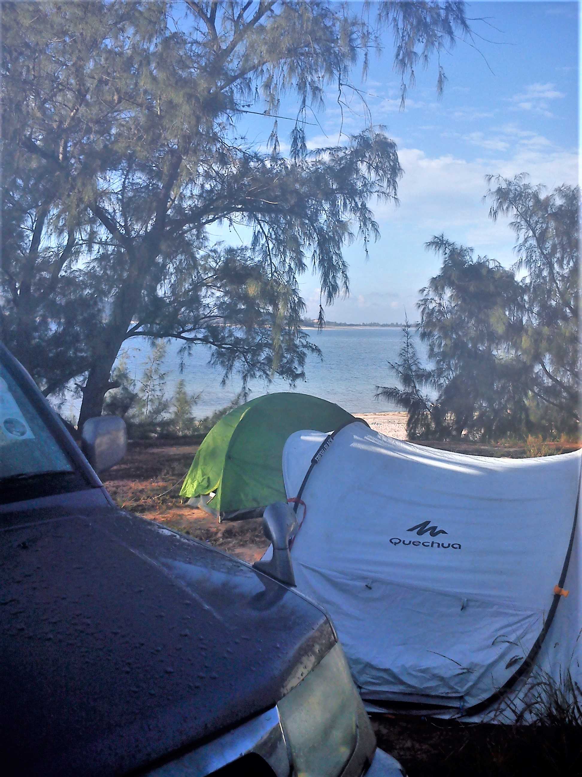A small rain starts again but I decide not to hide. After a few minutes, a German couple, Fridtjof and Mandy, who are visiting some beaches all over the country, stop and they are going to Maputo! They just do not know for sure if they would drive until there that same day. We have a good connection at the beginning. They are probably the youngest people who have ever picked me up. In the middle of the afternoon, they decide to stop in another beach and make camping somewhere. I really thought they are thinking about wild camping since the beginning, so I do not bothered to tell than I have just twenty Meticais on me. But when Fridtjof starts to look for a camping site or a lounge I have to tell them. So we find the beach (in Bilene) and make our camping. I think it is so cool that they go for a quickly swim at night but I could not joy them. It is the first time I camp or overnight with my lift and I think it is very cool. In the morning we leave to Maputo.