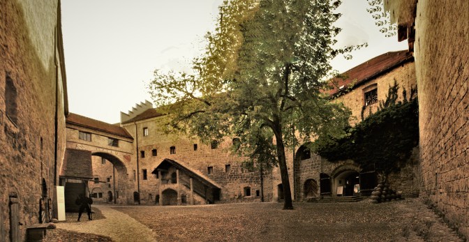 As soon as I wake up in the morning, before 6 o’clock, starts to rain. I could hear the thunders while I was still sleeping, but I did not figure what was about to happen. Anyway, it worked for the better otherwise I would probably had gotten pretty wet outside. It is a strong but quick summer rain. I pack my stuff and leave soon enough. I get back at the castle before 7 o’clock. I decide to go for a second tour, not only because I really loved the castle, but also because some spots have a better light in the morning than they had last evening. Of course I hid my back again, this time in the Parking lot, so I could walk easily. When I come back I have my breakfast, wash my face and brush my teeth at the public bathroom and wait for my host.