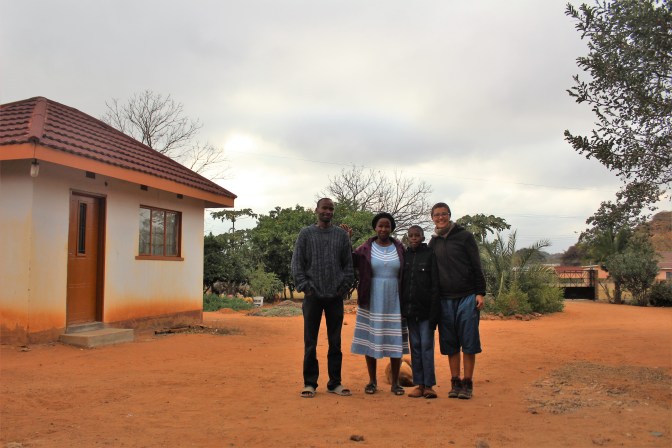 It is not to far and there I meet his uncle Kefilwe and his grandmother Maria Mogae. They listen to my story and totally agree with the request. I could not actually put the tent on the garden because the soil it is too hard, so I used the varanda. No wind, luckily.