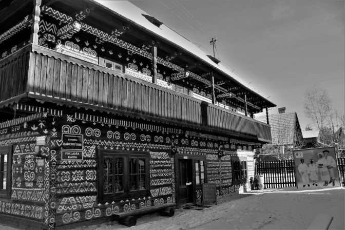 An old Rand Rover stops and inside are Mihail and his mum. They are going to ski in the mountains nearby Čičmany so they drive me there. Mihail is not very enthusiastic about the village. He tells me there is not many traditional houses anymore and that the village is dying because there is no job, so the young people are leaving to the cities.