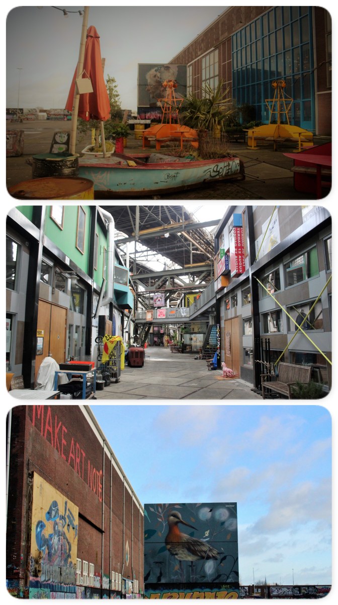 We take the free ferry from Pontsteiger to NDSM. It is a short trip but at least you can be in a boat in Amsterdam for free! And the best part is that this area is super cool. You can either just come for a walk, or plan a whole day, bring a picnic and some drinks. There is plenty of places to visit, many art studios to explore and to spend the day. The STRAAT Museum it is a huge complex which used to be a shipyard (or a place where they built and repair ships) and only for that it would be cool enough. But there is plenty of different art studios and projects inside (which you can also see for free), apart of paid exhibitions from time to time. Just nearby there is this fun complex, all made out of colorful containers, where you can find art studios, tattoo shop, restaurants, hair saloon, etc. Also in this area there is a huge fleamarket. I just don’t know their schedule.