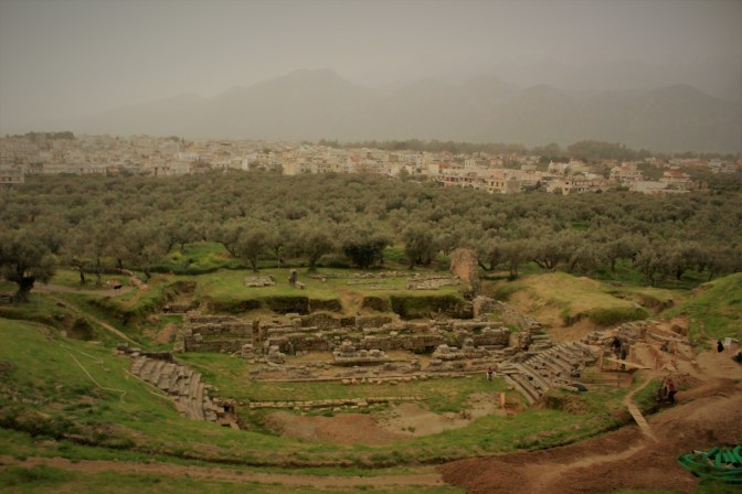 The ruins are nice and I would like to spend more time by them, trying to figure how it was to live here by that time, how it was to be an Spartan. But it starts to rain when I get to the Amphitheatre, the main attraction, so I decide to come back. There are some people working on the excavation. The site is for free and there are explanation about the particular places. I do recommend for you to stop buy if you are going to Kalamata or South Pelopponese, an area that you should definitely visit on your visit to Greece.