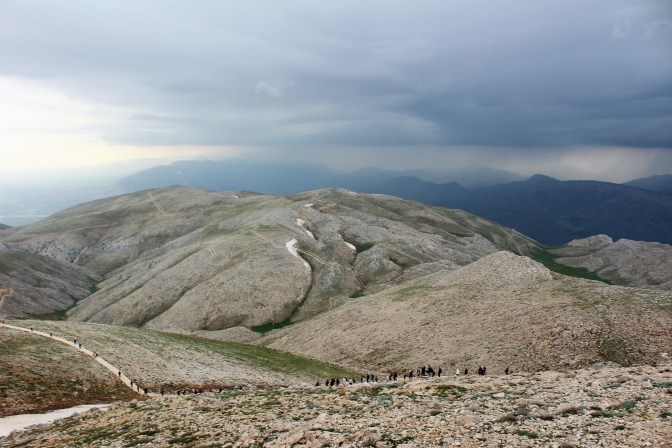 It starts to rain when we are half way down. Me and the guy with whom I have been talking don’t get that much wet because we are the first ones to make to the van but the others get all soaked. And while we are going down, there is plenty of people coming up, which is crazy! Although, when we are on our way back, the sun comes out and there is a lovely sunset. That is actually what Nemrut Mount is famous for, a beautiful sunset.