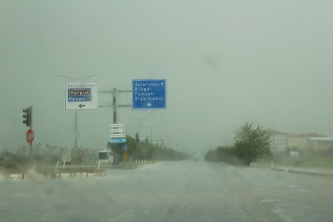 Ali is a very relaxed guy, who it seems to be hard working. He is an engineer and is going to do some work in Bingol. We chat a lot about many things and he is very surprised about my travels. The weather is not looking good but nobody was expecting what was about to come. All of sudden, a hail storm starts, and the strongest one I have ever experienced in my life, with hails the size of a golf ball! It is insane! And it last a long time too. All the hail storms I have experienced until now always lasted only a few minutes. This one went one for about half an hour! We and many other people had to hide in a gas station because we were worried about the cars.