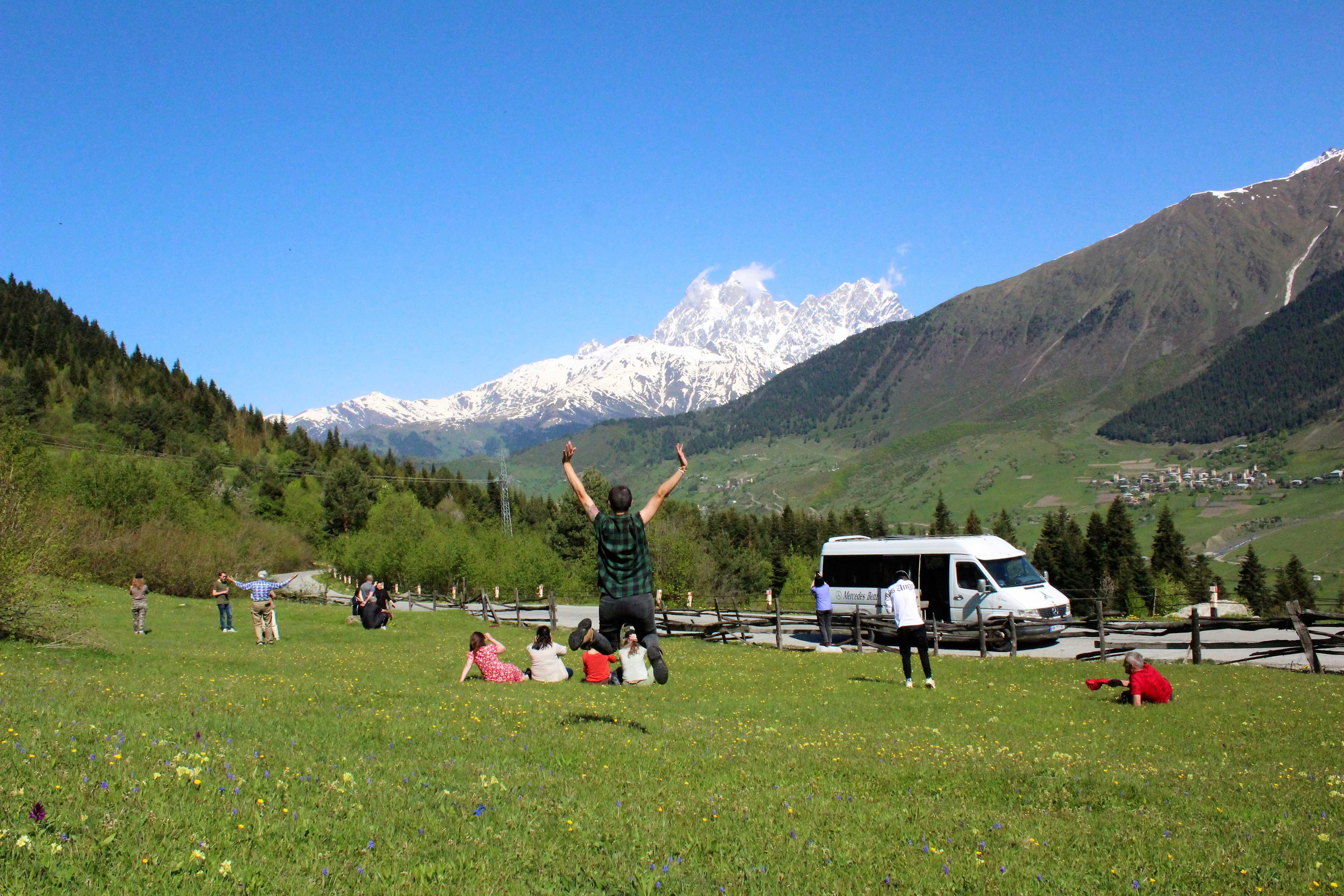 My next lift it could not have been more unexpected and wonderful! Another group of friends, just like in Turkey, but this time most of them are tour guides from Batumi and they have never been to the Svaneti region. They start to ask me questions about my life and travels, and they get very surprised with my answers.