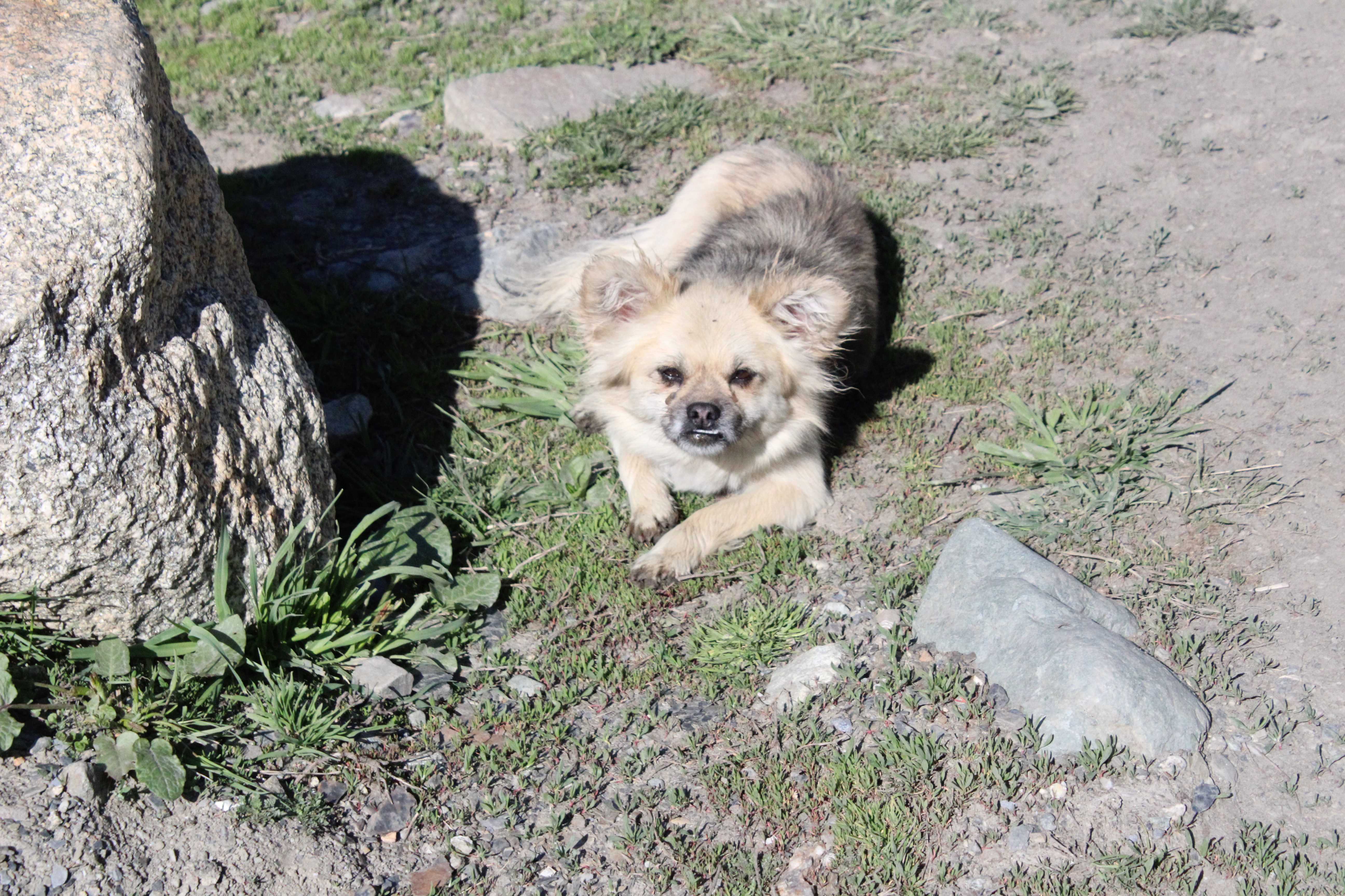 I finally knock on the window and tell them the situation. I was thinking about taking him also on the back with me and give him a ride either to the next village or to Mestia. But the lady tells me, translating from the man, that strayed dogs here do that all the time and he would be just fine. Reluctantly, and not able to do much, I say OK. Heartless people…