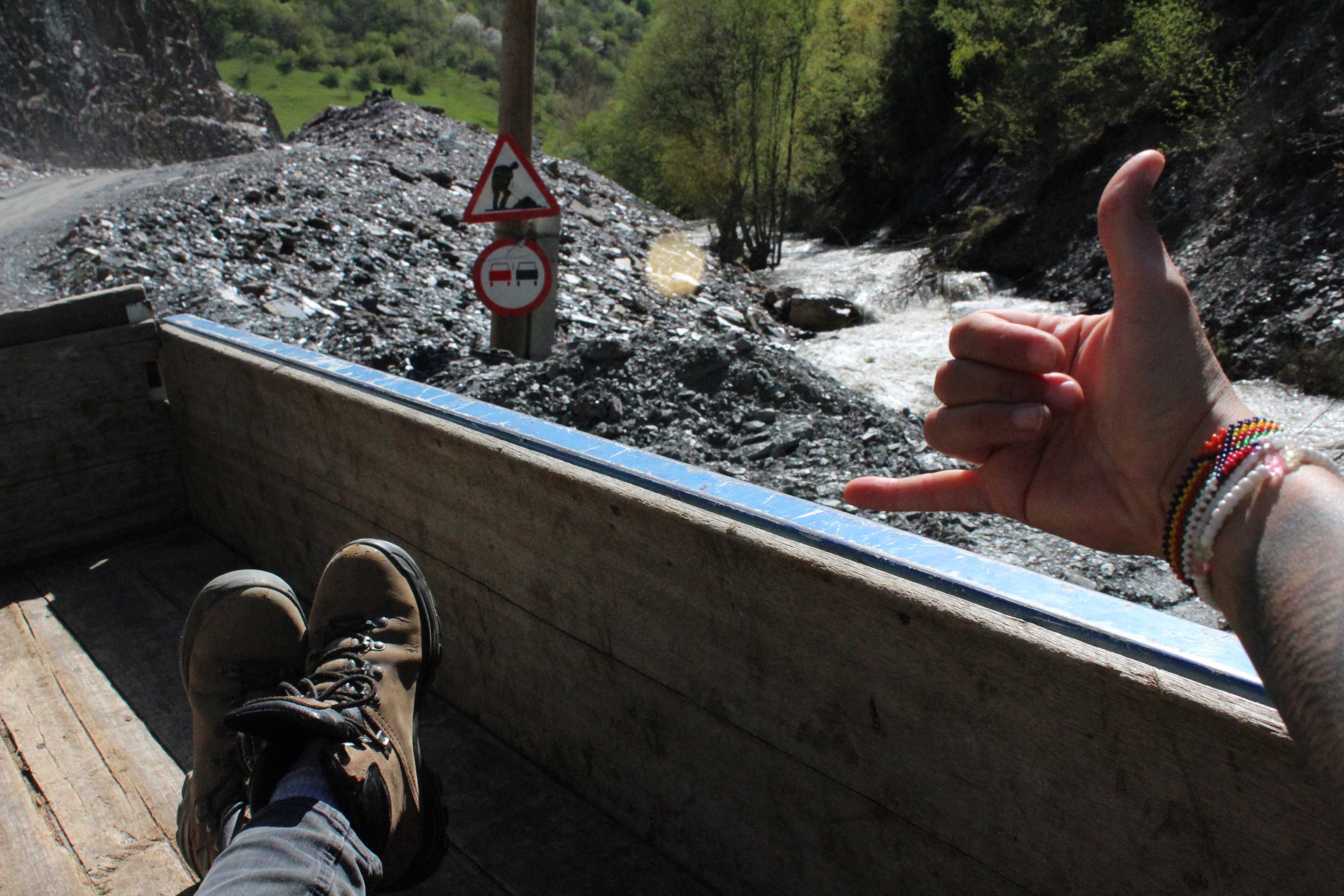 Not much time pass when I see a small truck coming from Ushguli. I know it is a local. But I also recognize another person inside: the young lady who asked me about the bus before. I am now thinking she is just doing hitchhiking because that was what she told me she would do in case the bus was not going to Mestia. But soon enough I would know that she wasn’t.