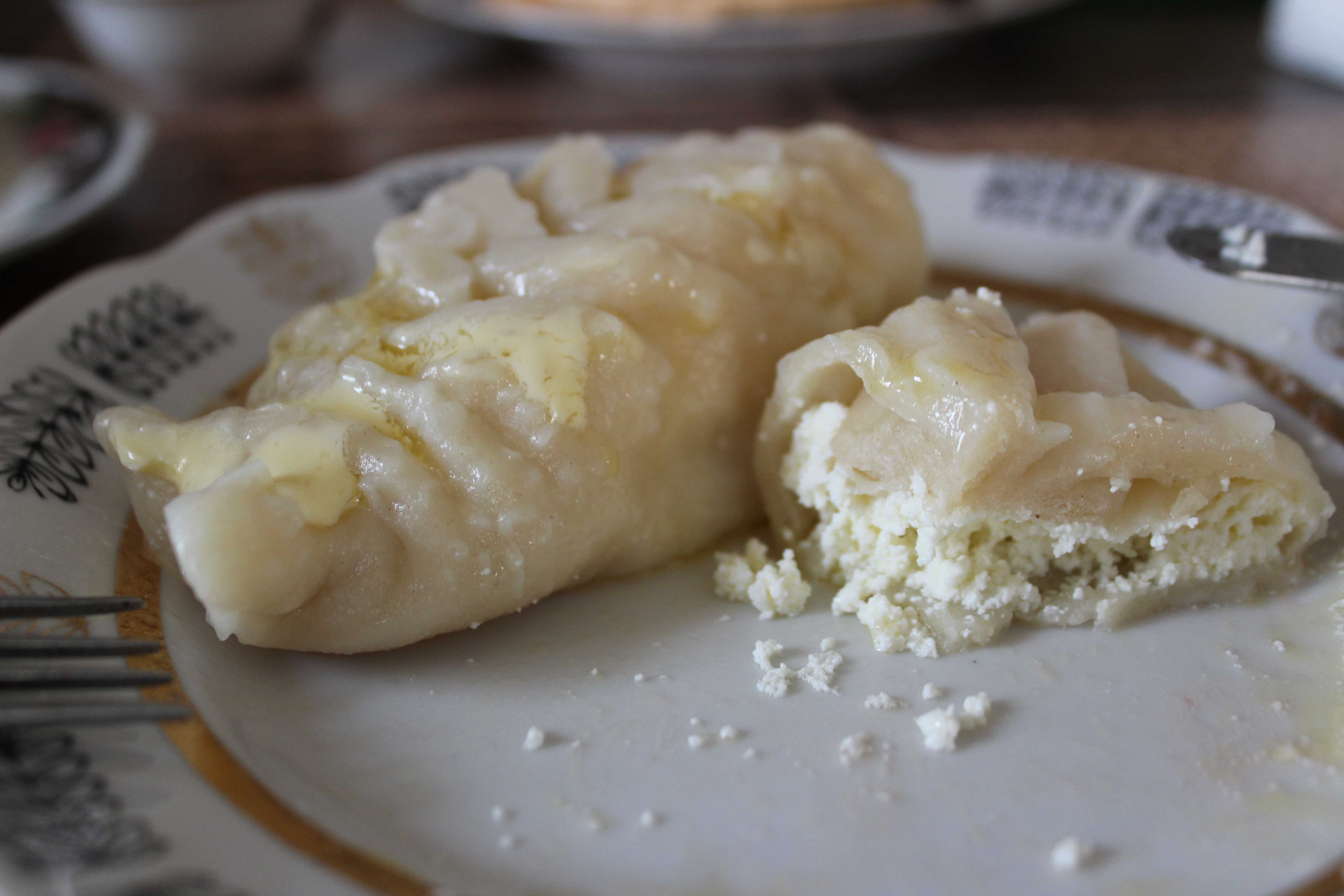 Next morning Dodo prepares a wonderful breakfast for us! Her homemade dumplings with fresh quark are delicious! We talk a bit more and we take a photograph. Her husband left for work already. I think she is happy to have a guest, someone with whom she can talk. It seems that she is a bit sad that I have to leave so early.