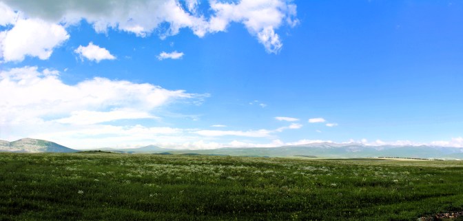 The views around here are gorgeous! Flat greenfields, with lovely hills far away in the distance. I am in the opposite side of the fatty Georgian mountains of Svaneti Region, or the Caucasus Range, but it is still Georgia!