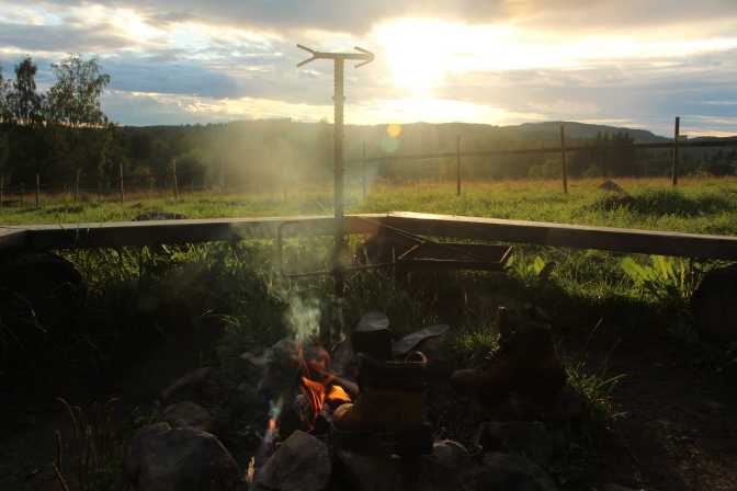 Yussi makes some fire and start to cook his dinner. I put my boots to dry by the fire and they melt a bit in front. Laugh.