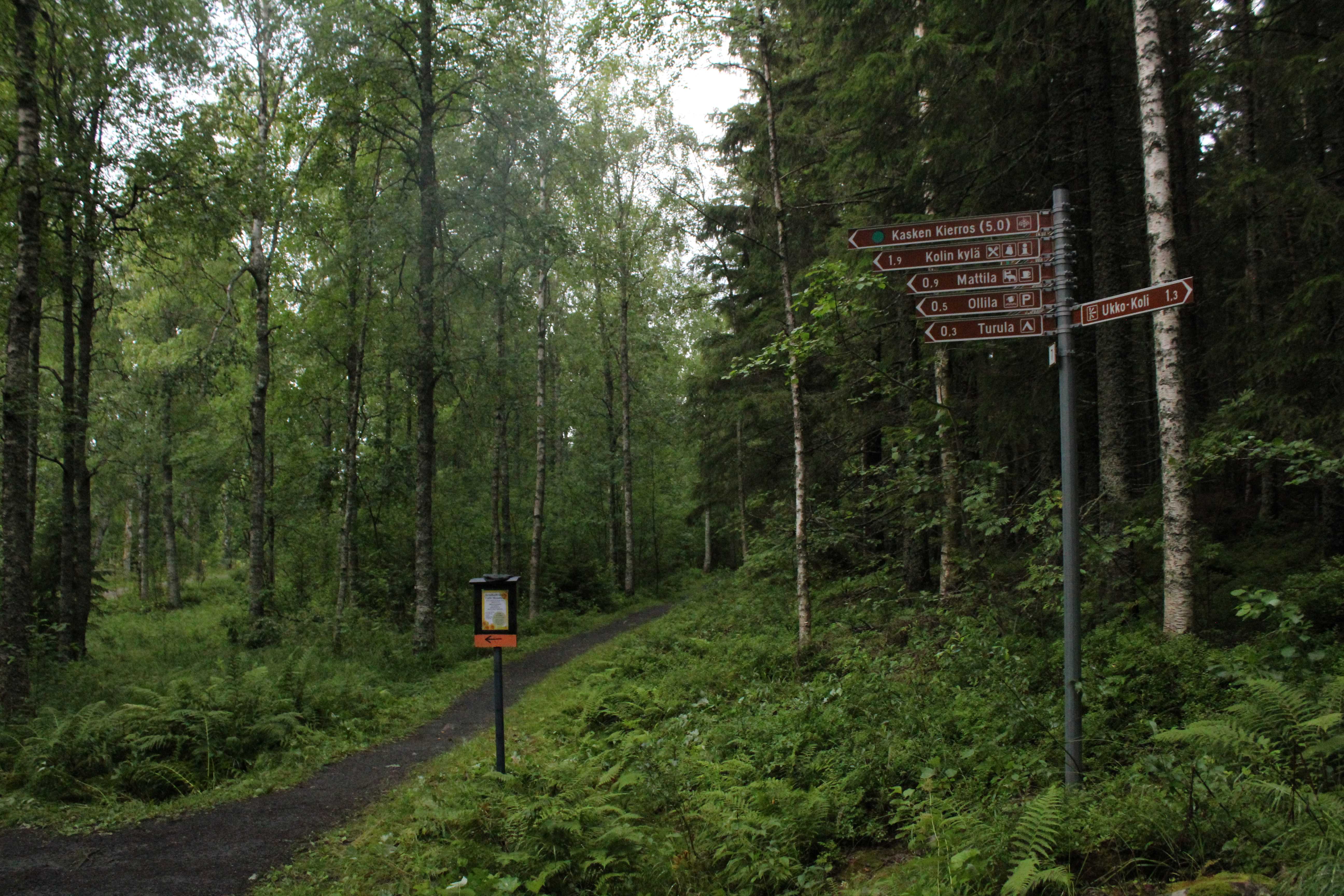 Nina and Bécko pass by but then they stop and return. They are both very fit, beautiful and charming. They are going to run in Koli National Park for a few hours, so they take me with them. They seem very surprise about my trip.