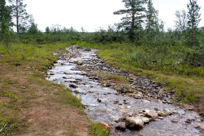 The trails are well marked but, they should warn people about wet areas. Well, it is true I didn’t ask any information to the lady, otherwise perhaps she would have told me. Anyway, the trail I take, called Kiirunapolku, it is partially flooded. In a particular area, near to the entrance, you have to fight your way out of the mud. Unless you are wearing rubber boots, which I doubt anyone would wear in a hiking trail. I felt like a rabbit, jumping from here to there, trying to find a way of going around the trail, always coming back to it. It actually would have been fun if the sky was not getting more and more grey.