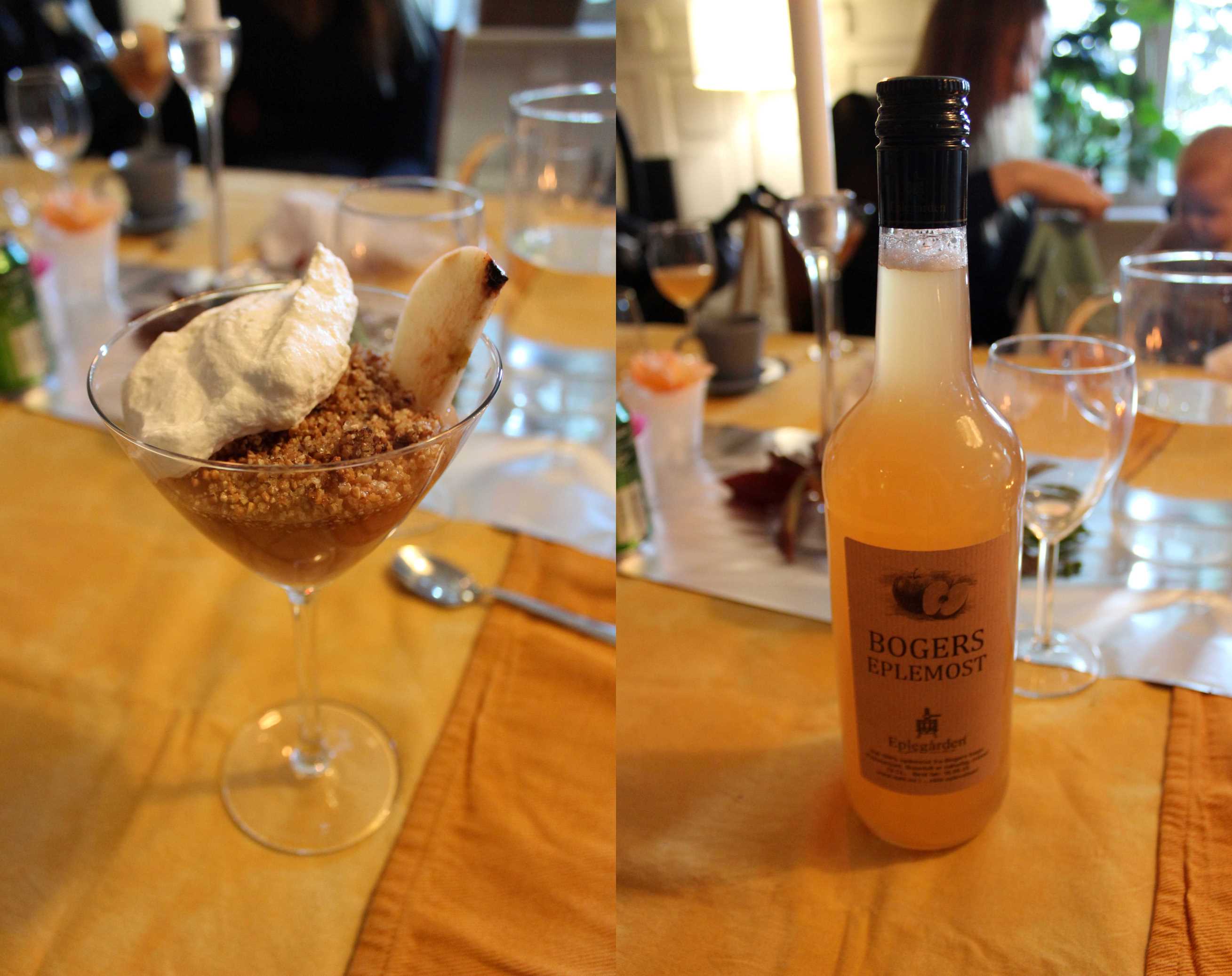 Tilslørte Bondepiker (apple pure, with whipped cream and bread crumbs and sugar fried in butter) + the apple juice made by the apples we collected in the cottage ☺