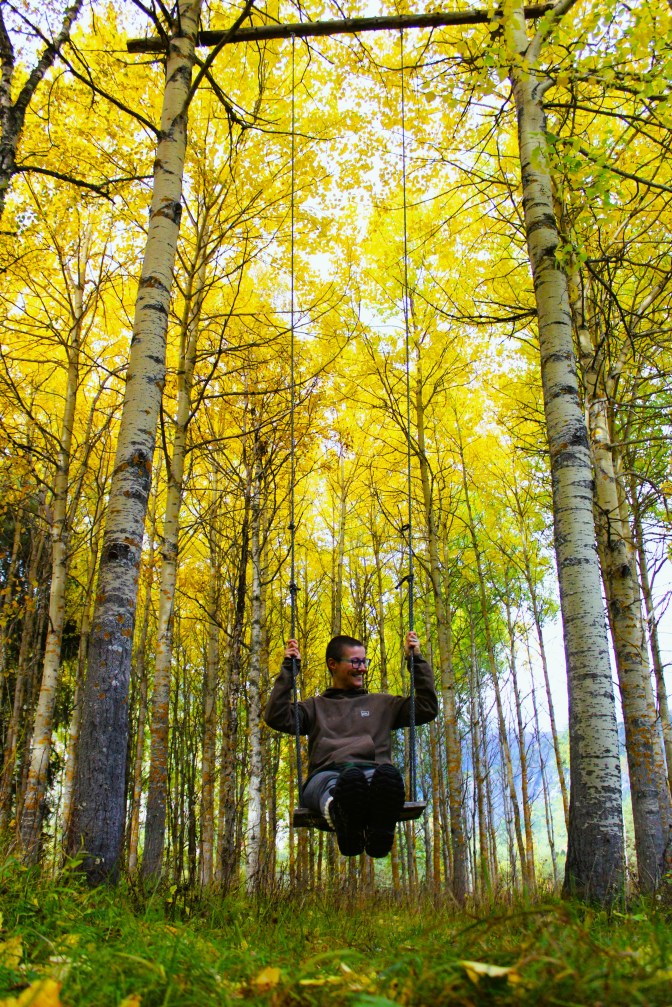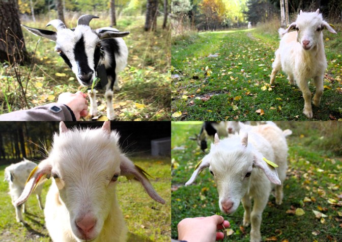 When we go back, Gunnar and I go to pay a visit in the nearby farm, called Nisja, where Ivar’s father was born and raised. Gunnar wants to say hello to the people living there now. It is a very nice place and we meet some super cute goats on the way. Coming back, I decide to spend some time with the goats and take some more cute shots of them. I found a swing in the middle of the forest, among this vibrant autumn yellow trees! What a beauty! With the blue sky as a background, it become an almost surreal picture! I spend some time here admiring the beauty and forget about time. Only the noise of my hungry stomach brings me back to reality and I walk back to Ivar’s home.