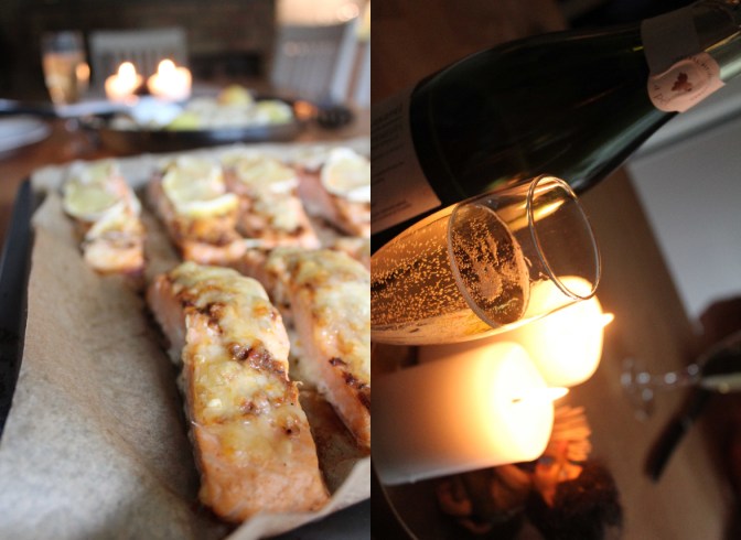 Gunnar prepares the salmon and some pasta with potatoes. We even have some sparkling wine to go with it. Fancy! The salmon is so delicious and I cannot decide if I like more the one with lemon and ginger or the one with cheese. A perfect ending for a perfect day.