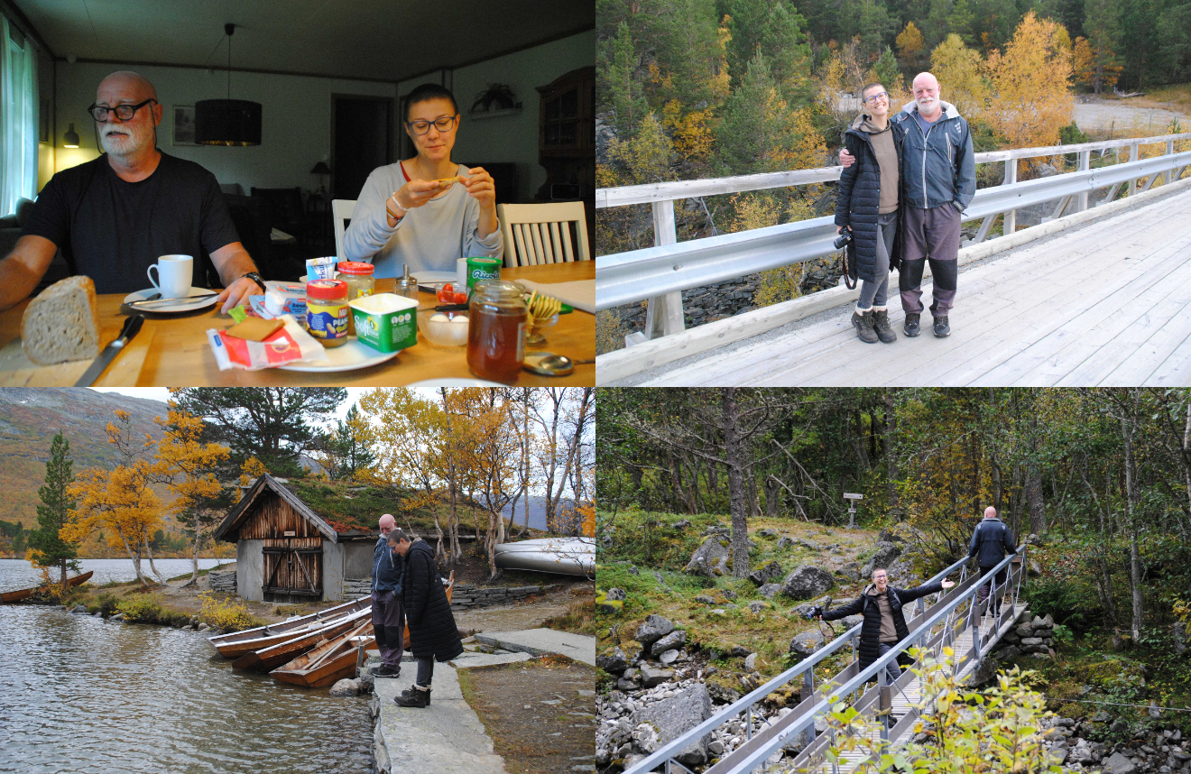 My last morning in paradise is also wonderful. After another delicious breakfast, I pack some sandwiches and some food for the road. Ivar gives me a wonderful souvenir of our days together: a wooden cup, Scandinavian style! And he also gives me a wool hat, which I so much needed! How could he possibly know? Gunnar gives me some insoles for my boots, which I also needed, and some chocolate snacks for the trip. I am ready to go even though I don’t really want to. I am excited to keep exploring Norway but I could also stay here forever!