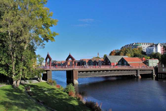 Together with Nidaros Cathedral, The Old Town Bridge (or Bybrua in Norwegian) is a very famous sightseen. It is a super cute bridge but also the houses by the river contribute to a very nice view, being all different colours and in a Norwegian traditional style. It seems that the bridge can also be called Gamle Bybro, and it is also known as Lykkens portal, or Gate of Happiness. Isn’t that beautiful? That is because of a waltz written by a Norwegian singer and composer, Kristian Oskar Hoddø, called Nidelven stille og vakker du er (Nidelven quiet and beautiful you are), Nidelven being the river. It is said that Oskar Hoddø was a member of the resistance movement against the Nazi occupation in Norway and he was executed in 1943 together with other resistance campaigners.