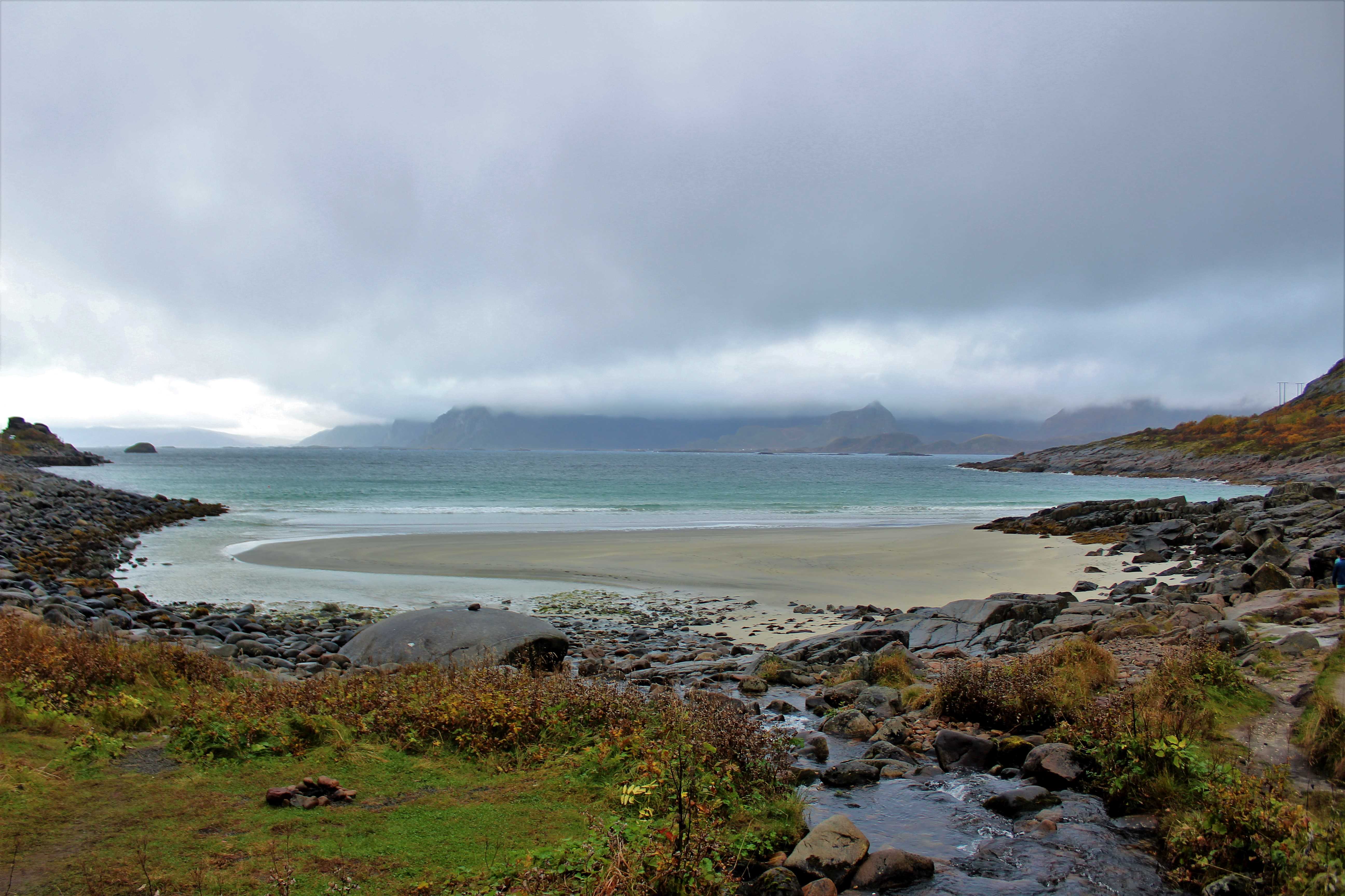 Karen and Vei are very sweet and arrange their extremely clean and tidy campervan so I can be comfortable. Vei doesn’t speak much English but Karen has been living in New York longer than him so she can. That’s where they live now. They are so sweet together and it seems to me they are truly happy. We make quick stops in three different places: Rørvika, a small village with a beautiful beach; Henningsvær, a town in an island, made of tiny other islands, in a very funny location, like outside the mainland – it is difficult to explain but it seems is quite touristic and many people come here for hiking; and last in Svolvær, a small town famous for its beautiful cliffs.