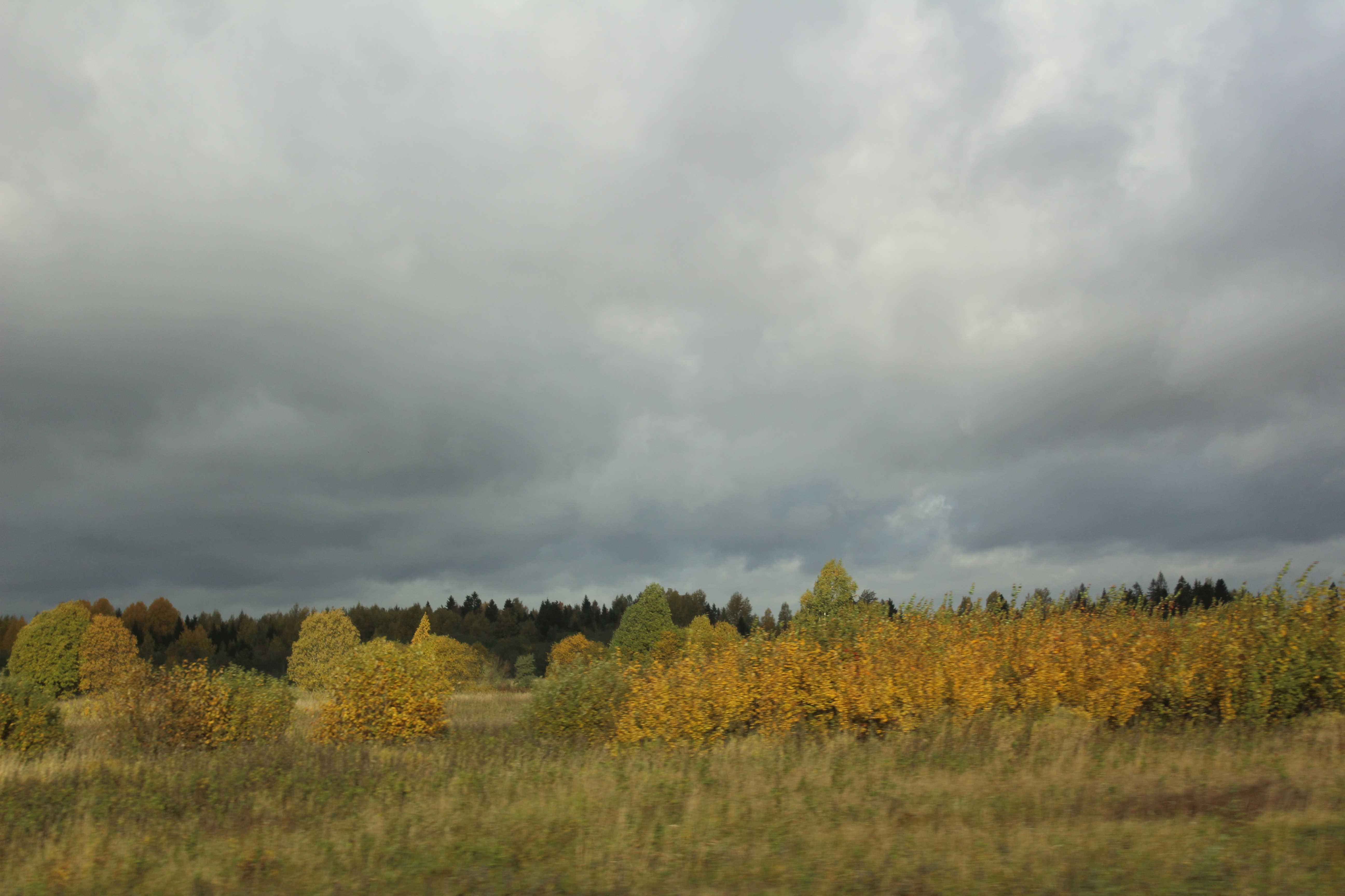 It is pouring rain all day long! Almost 900 Km of non-stop rain. I did manage to see some of the landscape at the beginning though, even though some of the trees are quite dead, I also managed to see some nice yellow ones and some pines too.