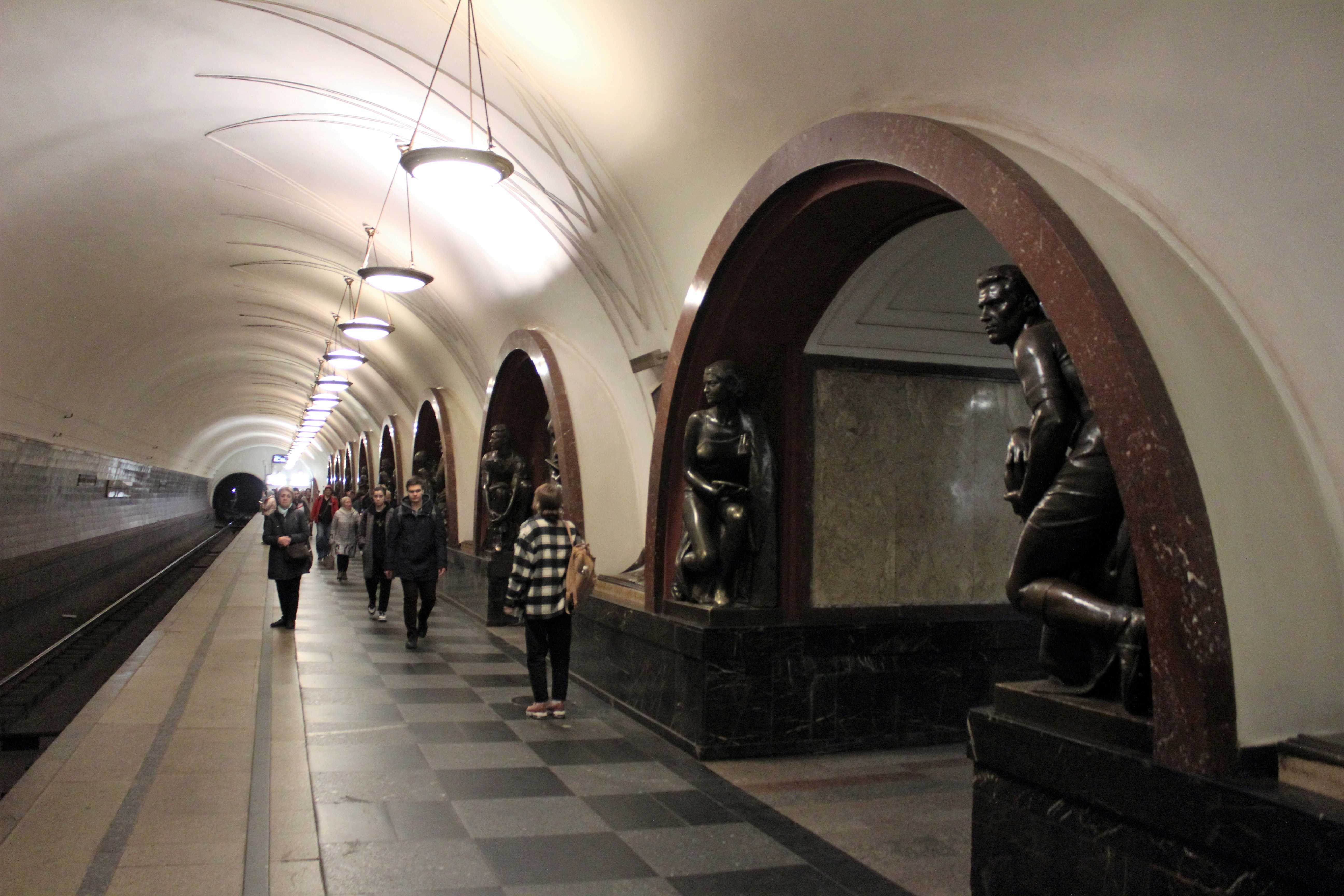 My plan for Moscow is to spend the day around the city centre today (yeah, yeah, that means the Red Square and abouts) and tomorrow going to a different area to see a bit more of the city. On my way to the centre, I stop by in three different metro stations to check out their art, as Moscow is known for its beautiful metro galleries. And w-o-w! The ones I see first are Park Pobedy, Slavyansky Bulvar, Arbatskaya and Ploshchad Revolyutsii. Dear, Loki! They are precious! You should definitely take the time to see them. It takes only a few minutes between trains anyway, so just get out, look at them for a while, and soon enough there will be another train for you to get in again. It worth it, believe me!