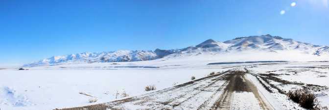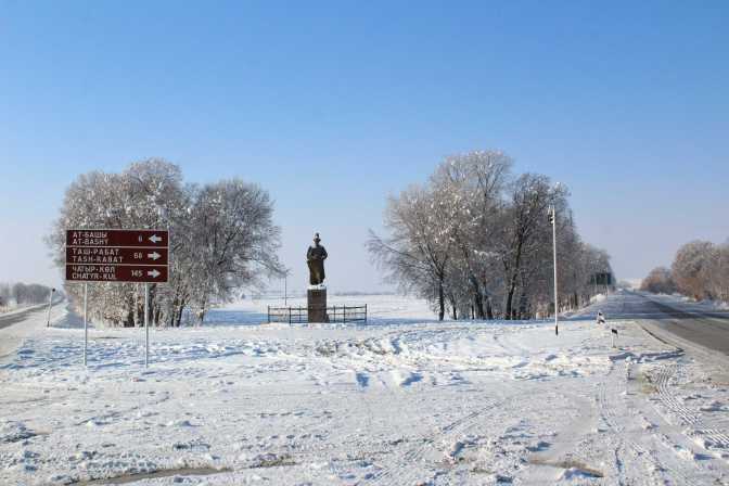 I remain by the road to Tash Rabat for quite a while. It is extremely beautiful here! It is all covered by snow, white everywhere. There are only hills, not mountains, but I still think it is gorgeous! I take some photos, make a video, and after sometime I decide to go back. It is clear to me that not many people are going to Tash Rabat, so even if I make it there, I might not be able to come back today, as I planned.
