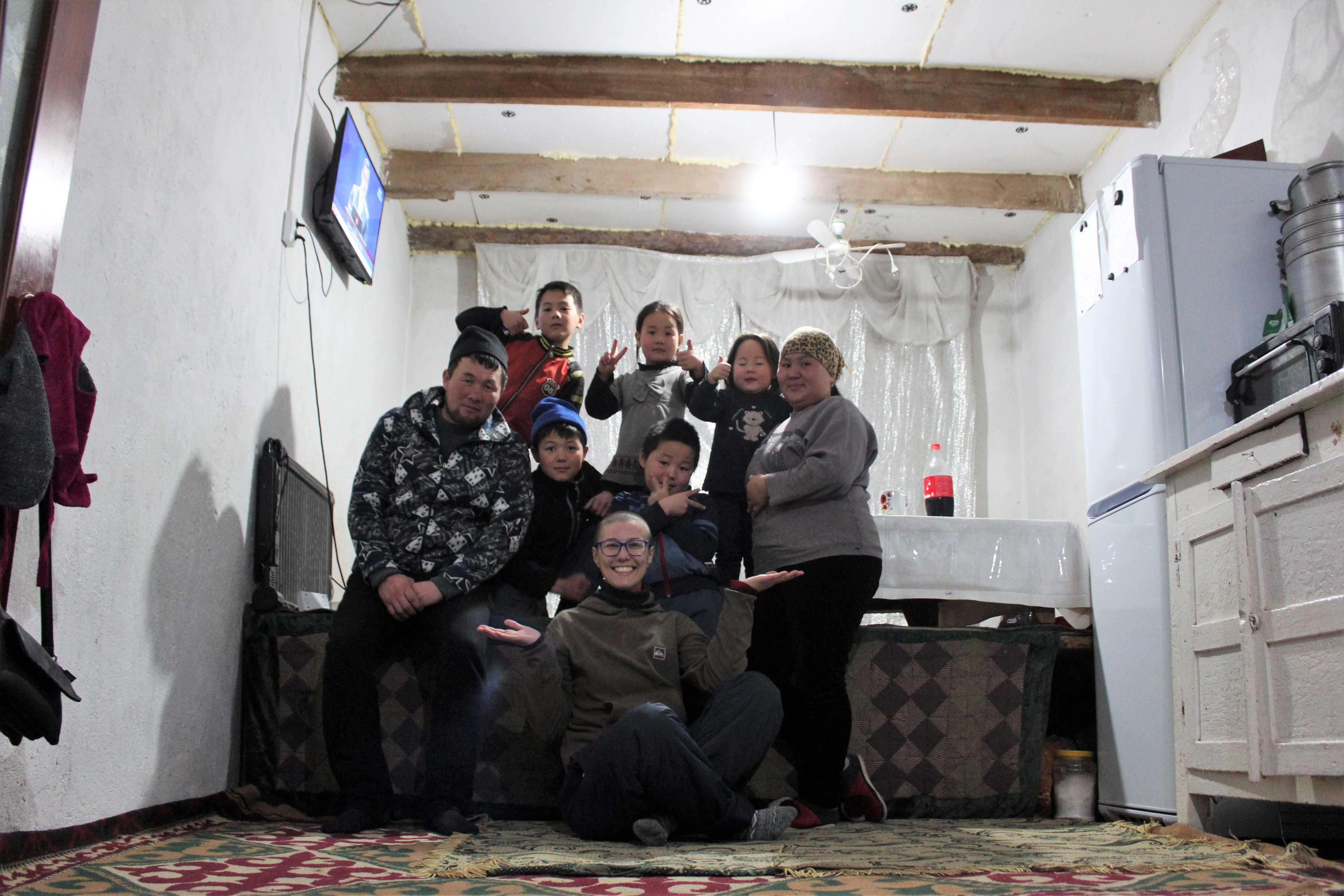 After dinner and tea, we all go to sleep. The house has only two rooms. Kalmira and Mirlan sleep in a bed in the kitchen; me and all the kids sleep in the next room.
