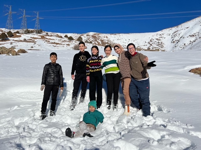 On Christmas Day, Nasiba takes us all to the mountains. Two students come along and also one of Nasiba’s niece. We get mini-Kombi for ourselves and the driver stays with us the whole day. It takes about 2 hours to arrive to the place and we pass the time singing Jingle Bells and other songs.
