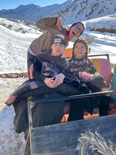 Apart from Demir, Nasiba has other two boys: Ijod, 8 years old, and Akbol, 12 years old. They all have very different personalities. We play cards from time to time, and I also introduce “Head’s up” to them. The most difficult part is getting them to be out of their mobile phones. It is INSANE how much time they spent on that. It really seems like they don’t know how life would be without it.