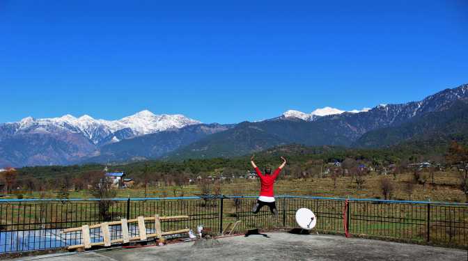 The view from the rooftop is amazing! The Himalayas! Some days, the air is so clear that it seems as you can almost touch the mountains. It is so beautiful! And the rooftop is huge! The building has two floors and the rooftop. We live on the first floor, and on the ground floor are some local shops.