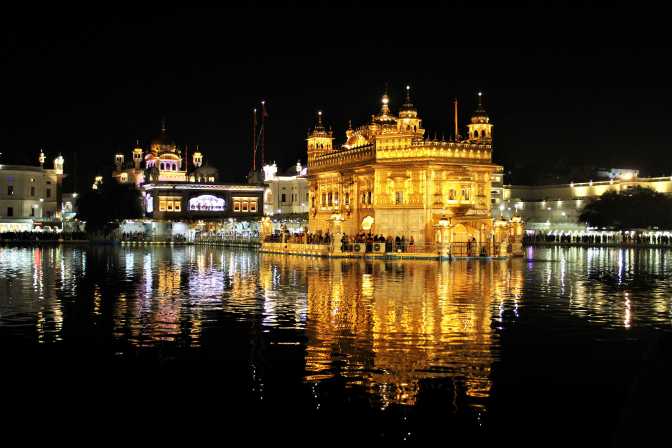 I wanted to take my boots and backpack back and bring it to my room with me. I got back inside the temple complex, took some photos after dark (when it also looks gorgeous!), listened to the pray at 7 p.m., and then collected my things. Both were still there! Actually, the people who gave them back to me were super friendly and kind. I believe that is something common among Sikhs. They all seem very correct, polite and good-hearted people. There is something about them that makes me trust on them immediately.