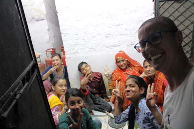 The food is simple: chapati, dhal and sabji (vegetable stew) but it is all I need. Quite a few more people come to eat while I am there, and they all seem surprised with my presence. Before I leave, when I come to wash my dishes, I take a photo with the ladies responsible for the cooking. Among them, helping with the cleaning, some really young girls. They are all lovely!