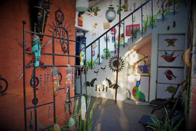 I have my first lassi. Amazing! We visit Kalaneri Art Gallery, and meet Lina’s friend, Somya. It is a nice place, going way beyond of only paintings. They work with many different types of art. And the place is gorgeous! Here, I also meet a photographer friend of Lina, Anshul.