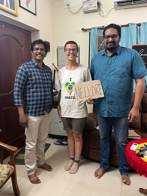 After a few minutes of waiting, Mukesh and Jamal stop. They are travelling all the way from Mumbai, on business, going to Nellore. Each one of them has their own business: Mukesh sells electronics and Jamal pyjamas. They are very sweet guys and buy me some juice and snacks on the way. When we arrive to Nellore is already night time, so I ask they guys to help me to find a church where I can ask for shelter. They do so and drop me right by it. Then, a super funny scene takes place. Jamal, tries to give me one of his pyjamas. I am actually in need of one because my current one is falling apart but because is new, I rather not accept. So we are both outside the car, surrounded by people, he keeps pushing the package on my way and saying: “Please, please, please!” – while I push the package back saying no, no, no. Everybody around starts laughing, including Mukesh from inside the car. After a while I give up and finally decide to accept the gift. Funnily enough, it is a blue pyjama, my favourite colour.