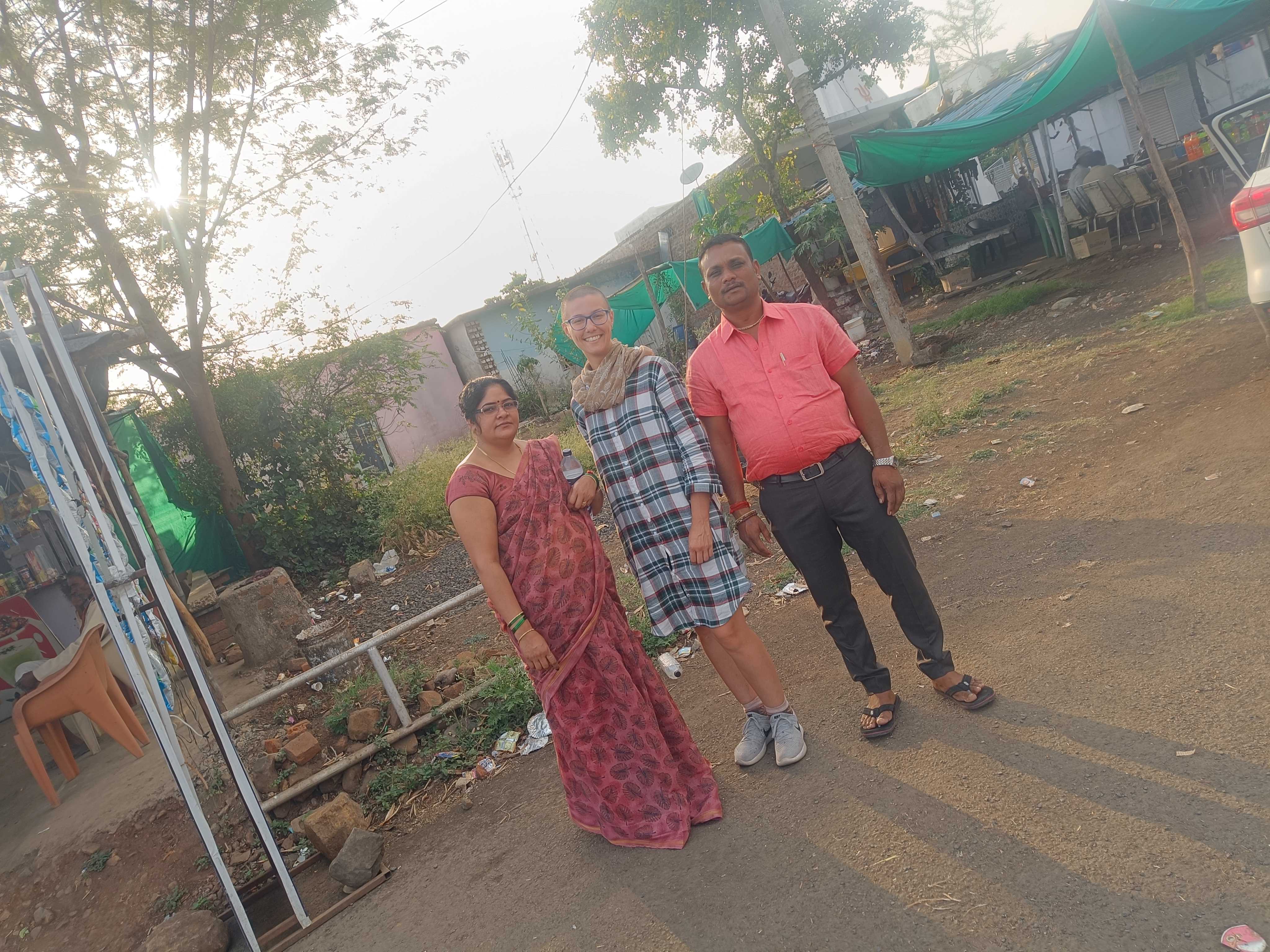 Everybody wakes up quite early. I take a bath and get ready to go. The women of the house divide task and are all preparing breakfast. I am gladly watching them doing everything. Vaishnavi asks if I would like to come for a short walk with her, around the village, and so we go. It is nice here. It is super green with beautiful big trees everywhere. The shades and the brise brought by them help to cool the temperatures down. Many people show sings of surprise on seen me here, of course. But it is in such cute and polite way, that I feel honoured actually. After breakfast, when we sit in front of their house to rest, the same happens with people passing by and coming to shake Vijay’s hand and, of course, asking about me. It is like being in a movie. Laugh.