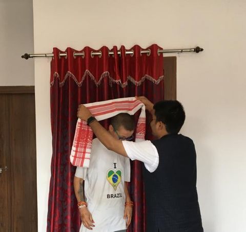 When I am walking across Bahri, a car stops and the young man on it insists on trying to help me. Sanjay is a very kind and patient young man, who works as a journalist but also is in politics. He first takes me to his home, where I meet his lovely parents. His mum, only a few minutes after we met, is already asking me to stay a few days with them. How sweet! She also gives me some delicious watermelon! Sanjay and I have lunch, a delicious food prepared by his mum. They all present me with a beautiful traditional cloth of the state Jharkhand, called Assamese Gamocha, which is actually a tribal dressing. I am honoured! After this lovely time, Sanjay takes me to the highway again, so I can resume my journey to Bangladesh.