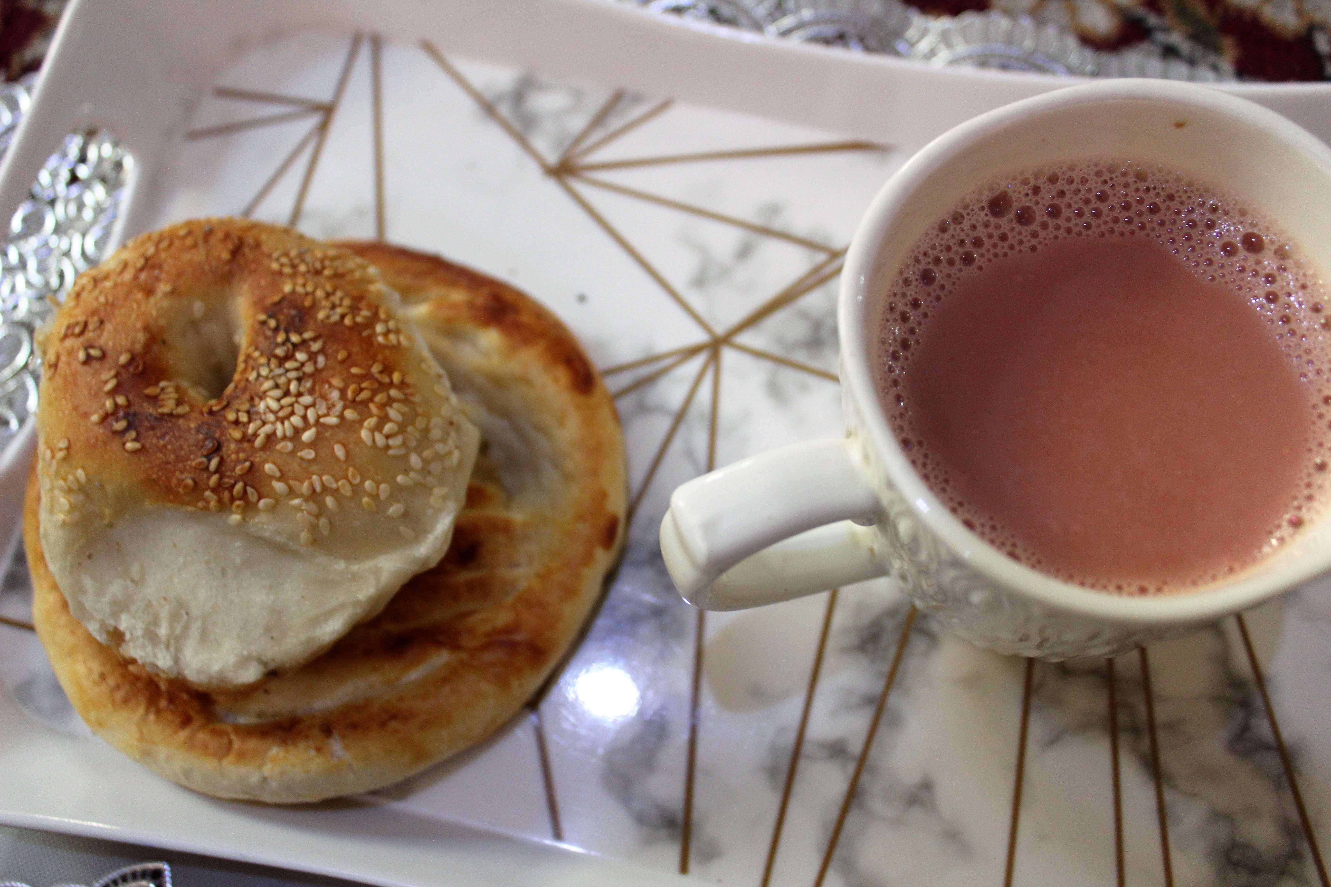 Next morning, I try the Kashmiri tea for the first time. It is salty and pink. I have read about it before, in Dervla Murphy’s book, Full Tilt, and just as it was for her, it is really weird for me at first. But in the opposite of her, I don’t have time to get used to it.