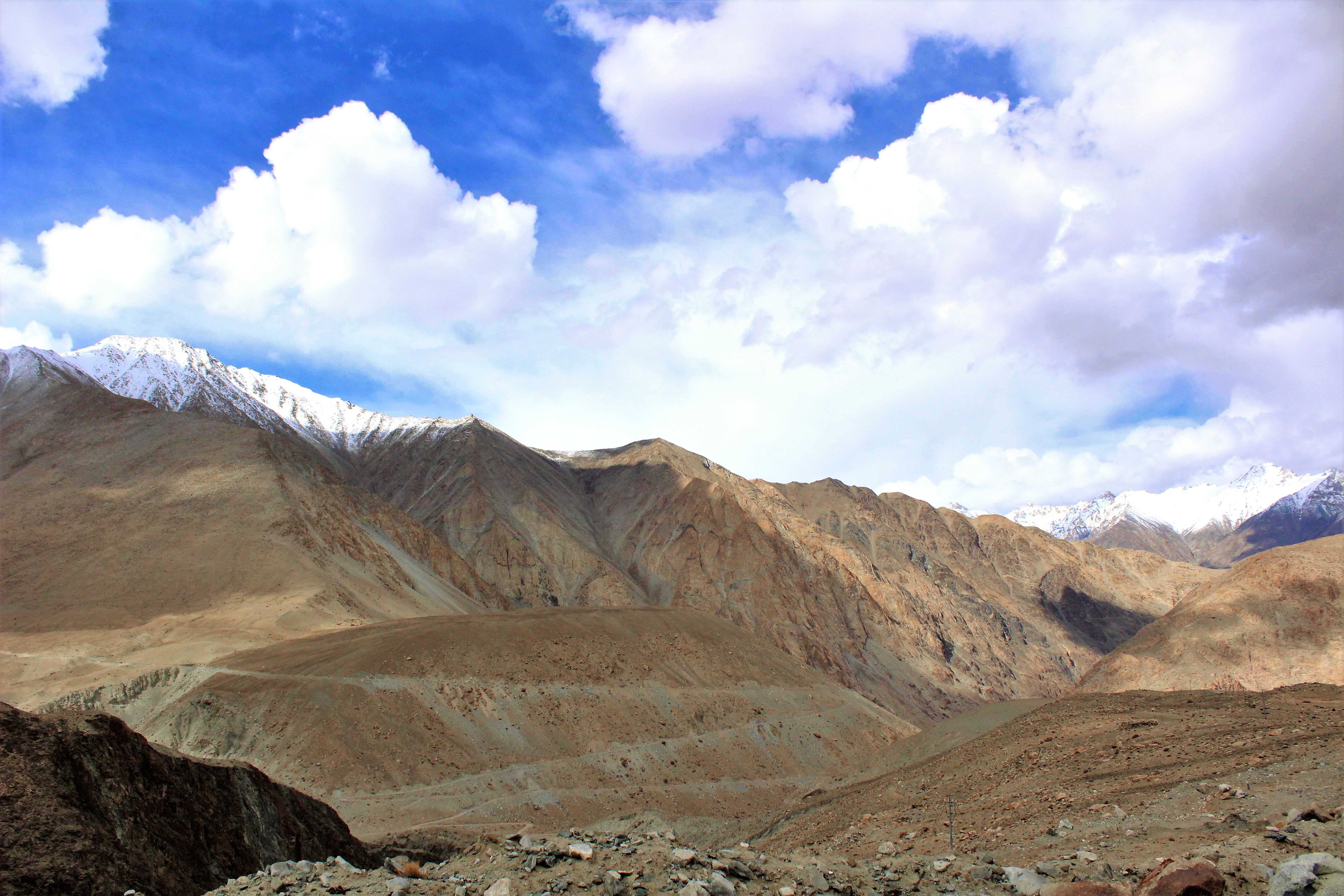 What I also like about Ladakh is how it constantly changes its scenario. It has desert looks, Northern hemisphere mountains looks, and all of sudden, everything is covered in snow. It is kind of in the same way when I was coming from Jammu and Kashmir to Leh. I think my favourite scenery is when the fatty mountains look like a vanilla spongy cake, with icing sugar on top; or as they call in English, bundt cake. In Brazil, we just call it English cake, and I used to love it! Perhaps, that’s why I like these mountains so much, it is a nostalgic feeling related to my childhood food.