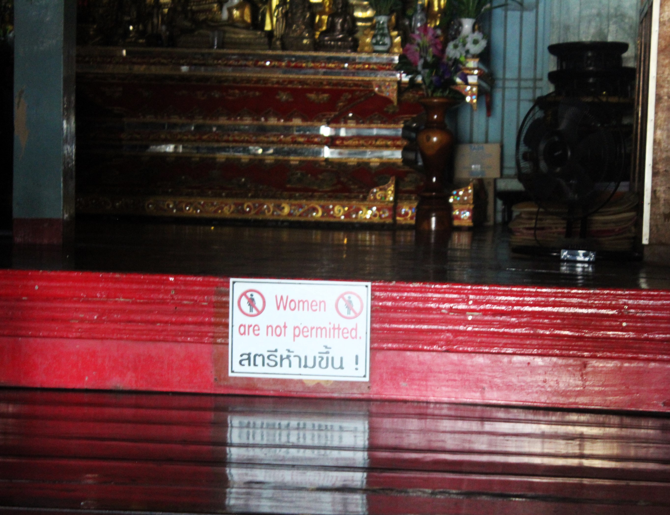 After grabbing my backpack back, I take a quick walk around Mae Hong Son before breakfast. The lake area is quite cute, and I decide to take a look inside of the monastery standing right in front of it, called Wat Chong Klang. Although the architecture of the place is gorgeous, showing an old wooden style, with shades of turquoise inside and holding old pictures on the walls, which gives the whole place a very nice retro atmosphere, I leave the place in a hurry and quite disappointed. The reason? A well clear proof of what I try to tell people, and am quite distrusted, as I believe, about even Buddhism being sexist. There is a sign hanging at the entrance of a room which reads: “Women are not permitted”. Inevitably I think the following – At some point in life, every single human being has been inside a woman, and now there are places on Earth which we are not allowed to enter? Seriously?