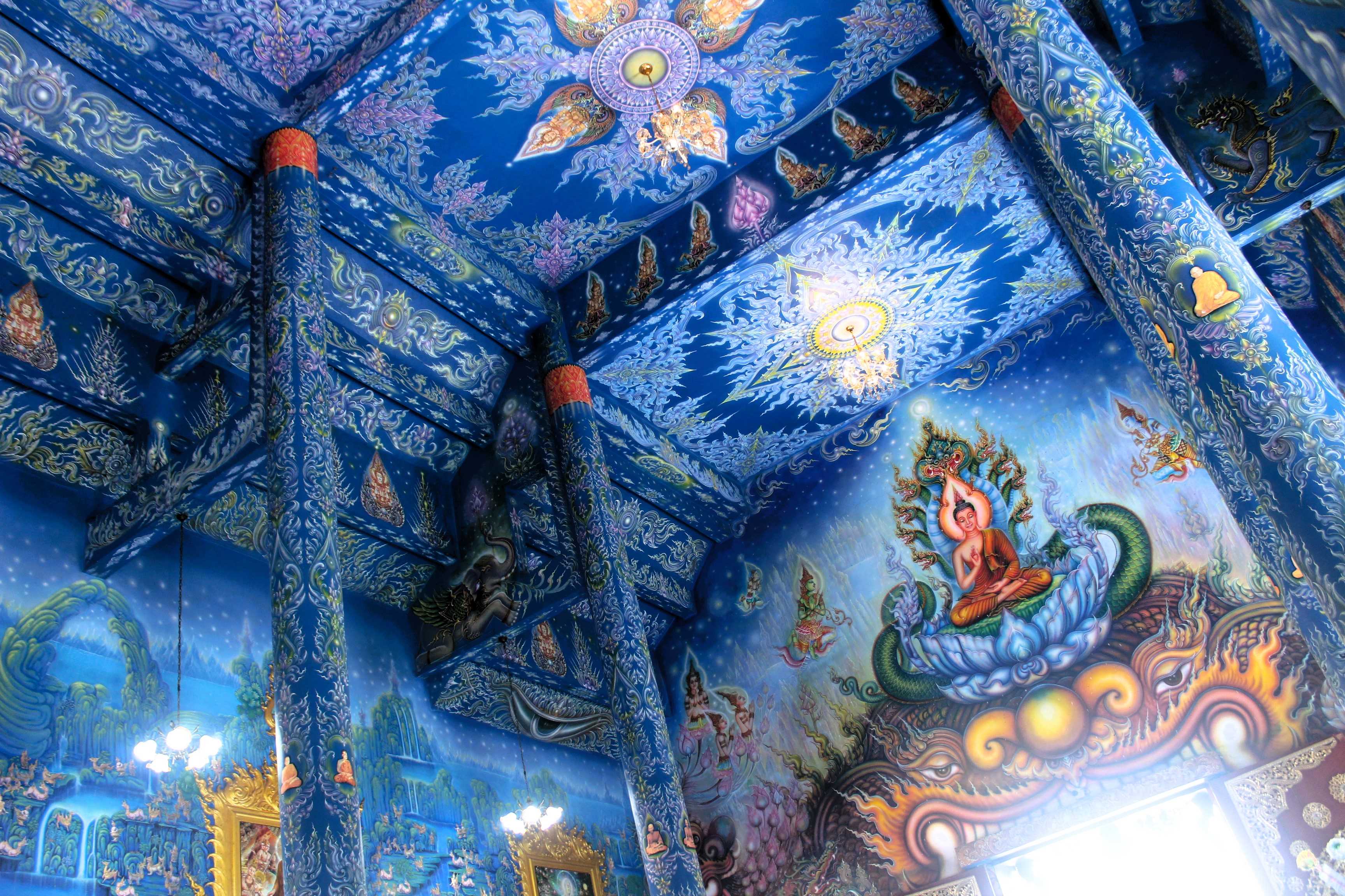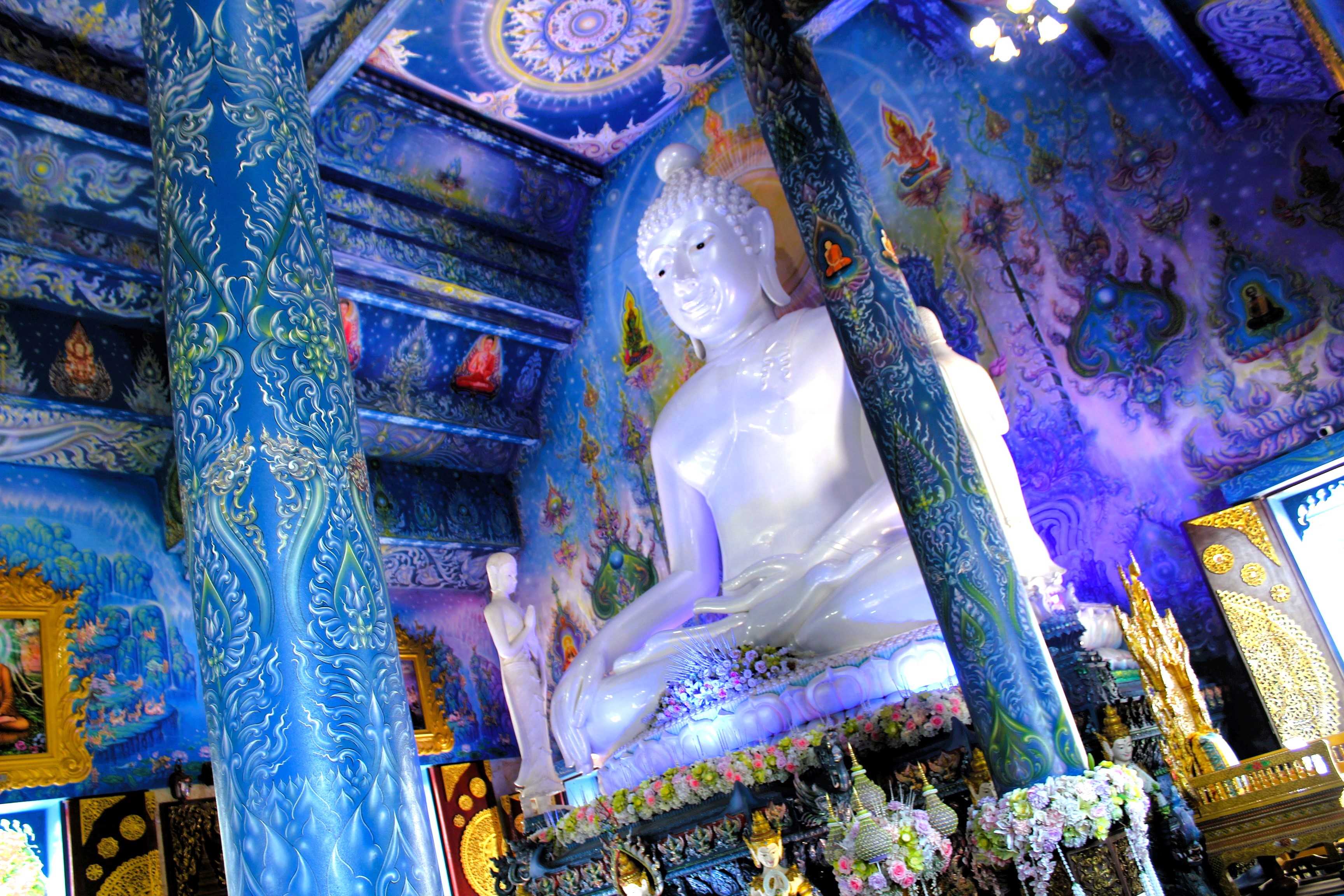 The Blue Temple is amazing! And I am not only saying that because it is for free, no! Or because blue is nowadays my favourite colour, no! I really think it looks gorgeous! The many different shades of blue, in contrast with the golden brushstrokes, looks terrific! And that’s only from the outside, where the traditional style also magnifies the whole structure. When you walk inside you are struck by the surreal beauty of the place. The images painted all over the walls, the many different shades of blue, blending into purple and pink, the mandalas also painted, the patterns, all together with the pictures hanged and ornaments, makes the place looks stunting! After some pictures, I just sat in there and stay for a while, admiring such piece of art.