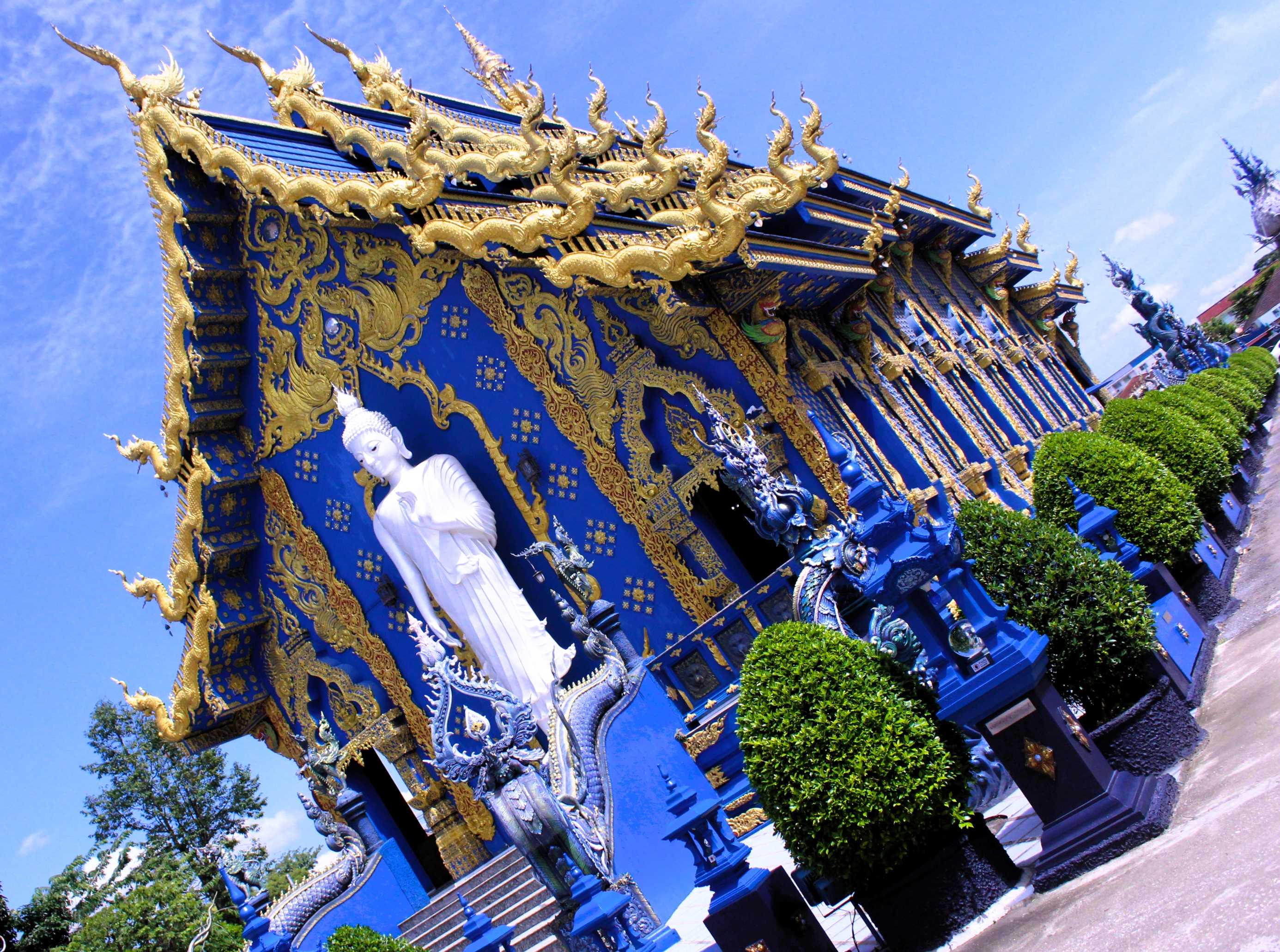There is a fee of 100 Baht to visit the White Temple, so I don’t go inside or closer. You still can see the temple very clear from outside though, because there are no walls surrounding it. It is a beautiful construction, I will give you that, but for me, it looks more like a tourist attraction than an actual temple, mostly when you have seen many other Buddhist temples, and you know that is not exactly how do they like or their original style. One little tip I can give you is: if you are coming by the end of the year (I was here in October), come early morning so the sunlight strikes the temple frontways, and you can get the most of it. When I came back in late afternoon, the sun was behind the temple, making photographs a bit harder to take. Plus, early morning there will be way less people.