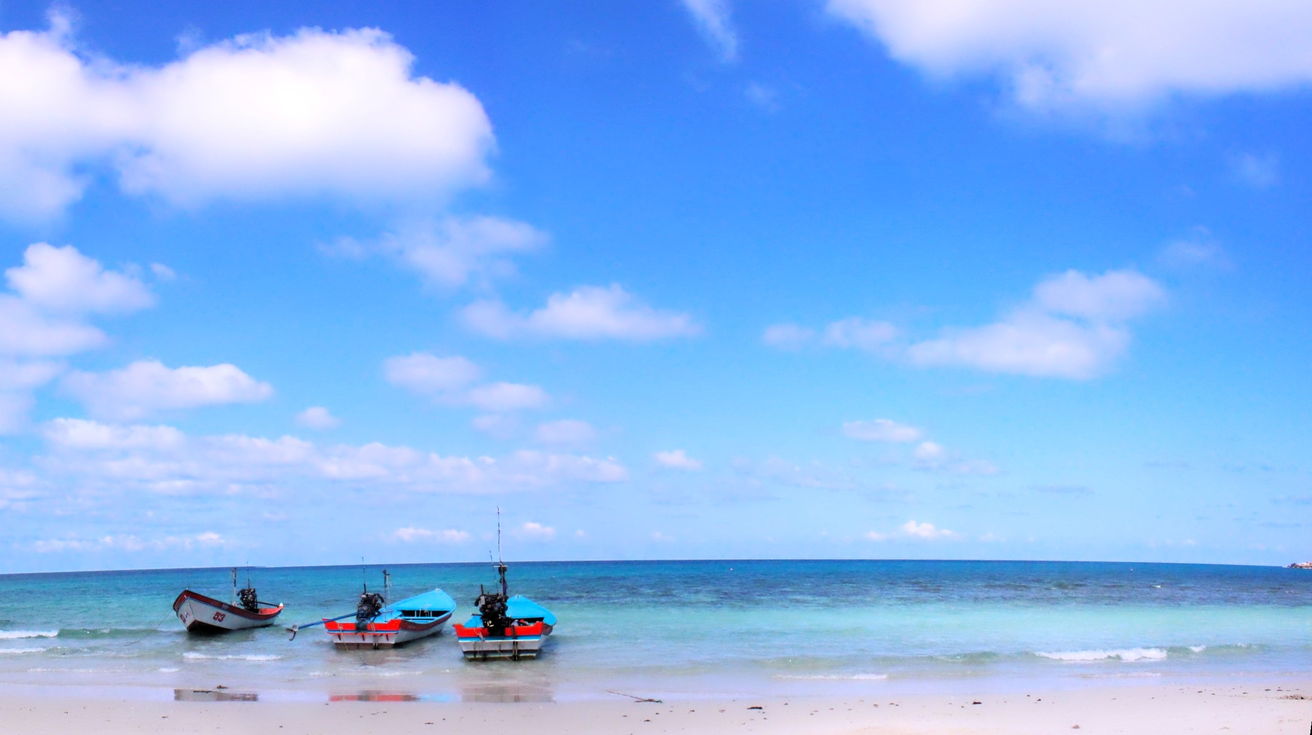 I take some photos. The sea looks gorgeous and some colorful fishing boats by the beach give a really nice touch to it. But I am still angry. I cannot enjoy myself in such crowded beach. It feels like everybody is looking at you.