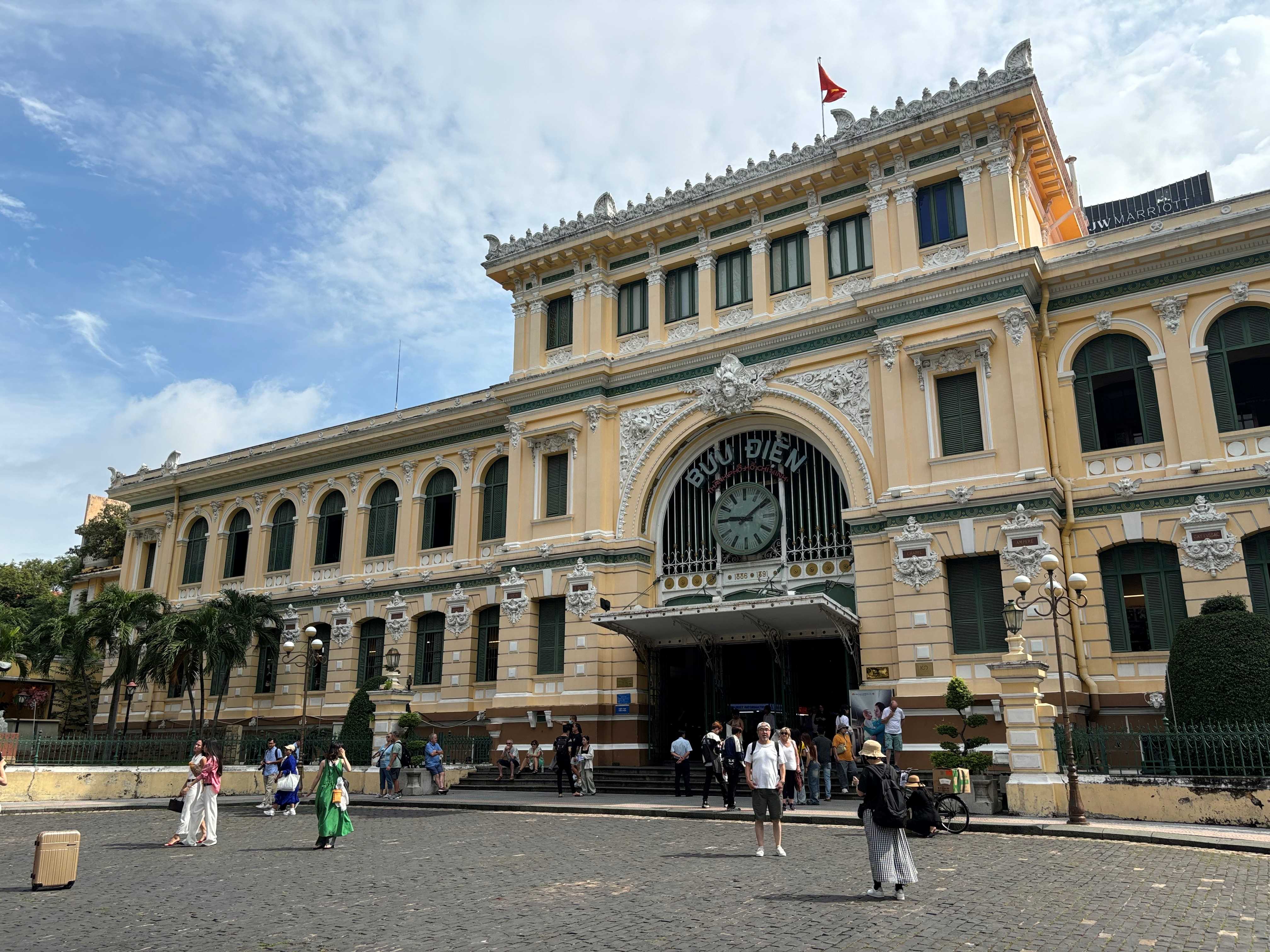 Next morning, we leave super early to avoid traffic jam. His work is near the centre, so I catch a lift. I was just not expecting that we would go by motorcycle, although I should’ve imagined. Anyway, is not so bad, and we arrive in less than 30 minutes. We stop just before his office building and he buys us Banh Mi and iced black coffee, or cafe den. It’s my first time for both! The Banh Mi is one of the most traditional street food you can get in Vietnam, and a favourite one among the youth. It is just a sandwich, baguette style, and the fillings can vary between pork, chicken, eggs, and different processed types of meat. It always comes with some pickled vegetables though, and green leaves. Sauces like mayo and ketchup are also always included, so if you want yours without it, you must ask. My sandwich is delicious, even though I figured out later it was pork. The coffee is also great!