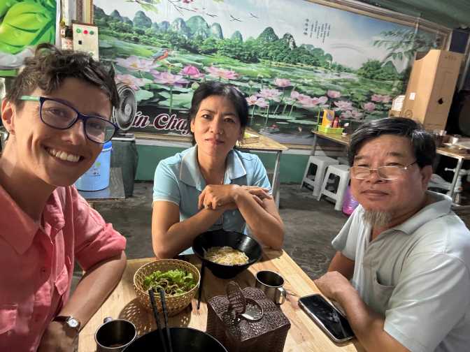 The nice man who gave me the coffee take me to a noodles restaurant just 50 metres walking from the association. Their noodles are amazing! Delicious and fresh! The lady who gave me the fried jack-fruit soon join us too, and after we finish, we go back to the association. I grab my stuff and after lots of thank yous and good byes, I go back to the road.