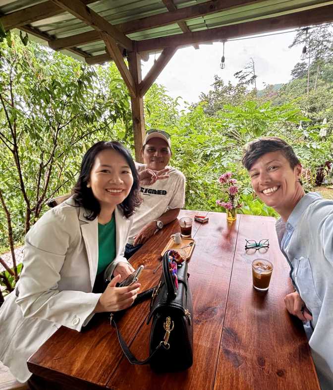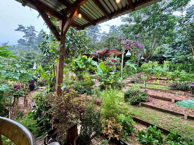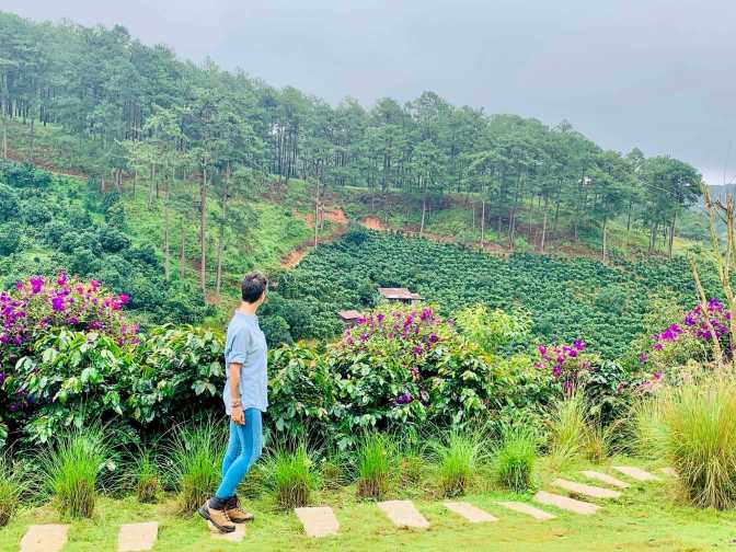 Pi helps me with putting the backpack in the trunk, and then we start my delightful next few hours with these two lovely human beings. Pi and Phuong are going to celebrate a special date by spending some time in a very nice cafe outside Dalat called Nắng Thuỷ Tinh. I was planning to go for some viewpoints just nearby this same spot, but as the weather was not great for photos, and after spending some lovely hours with my friends at this lovely cafe, I give up on that.