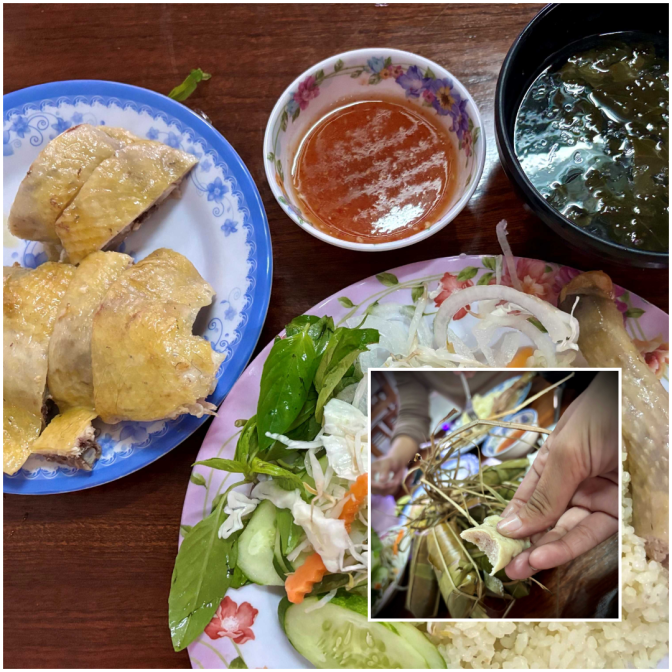 After walking for a while, as soon as I put my backpack down, Lan stops for me. He has a fancy Toyota, which resembles a Mercedez actually, and he is kind of fancy himself, perhaps because he works in a bank, the biggest one in Vietnam, but he is also lovely. He is going to visit his girlfriend in Phan Rang, and she happens to live in the same residential buildings where Phuong and her family leave. We chat all along the way and he invites me for Com Ga, a very traditional Vietnamese dish, which consist basically of chicken and rice. We also have some pork tofu, prepared in banana leaves. Everything is nice.