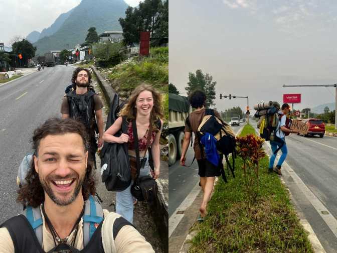At first, only Kuba wants to join me on hitchhiking to Hanoi, and the kids are taking the bus. Gladly, they decide to join us in our adventure, and hitchhike for the first time in “international waters”, so we would all hitchhike together. I am super excited! I love when people decide to hitchhike!