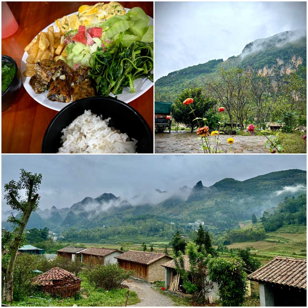The place is called Ngai Lung Homestay and I really like it here, even though is going under construction, with a new building being added to it. The restaurant building is massive and gorgeous, as all the structures are made with big wooden beams and logs. The dorms and bungalows, in the South of the property, have a gorgeous view! I had seen the view already when I was leaving Dong Van, and I thought it was really nice. There are many different mountains range, all extremely beautiful and unique! By the bungalows they also have some fresh vegetables and herbs, which look awesome! I just wish they had managed the whole distribution of the space better, as there are some areas which you really don’t know if belong to the homestay or not. Plus, they could have an optimization of the whole place, as even though the views are gorgeous, there aren’t spots where you can just sit and chill to enjoy it. Some areas actually edge the abandonment.