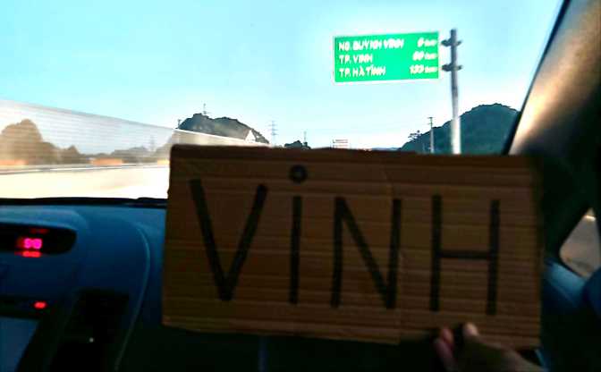 This really nice man drives me as close as possible to the highway which leads South, to the city which I hope to arrive tonight: Vinh. But he must go into the centre and it’s super complicated to drive around here, plus with the traffic jam, so I understand why he didn’t drive me all the way there. Plus, he also tries to pay for a grab to take me there, but I kindly refuse.